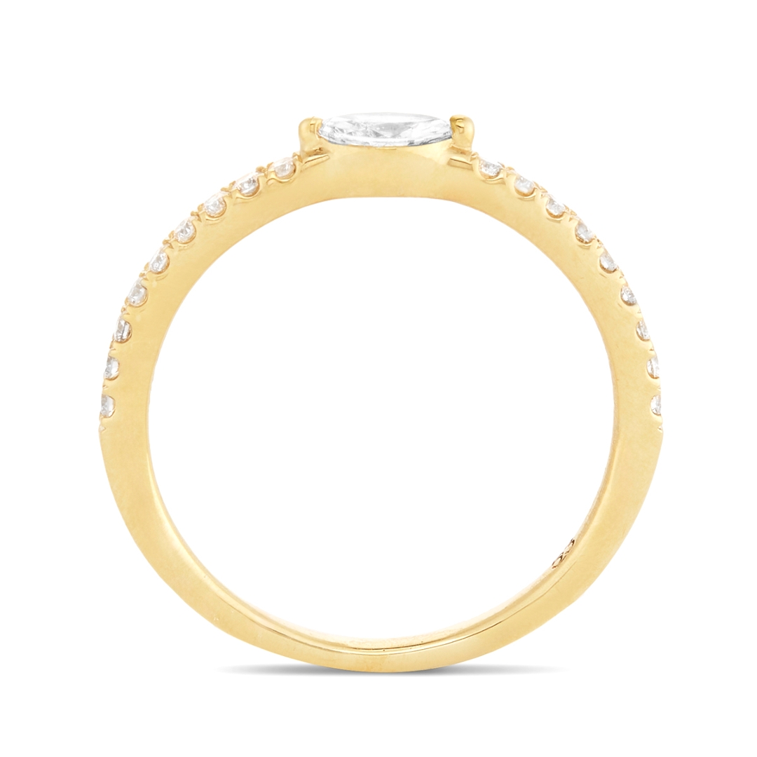 A brand new, unused, certified natural diamond cluster ring, set with one marquise-cut diamond & a cluster of brilliant-cut diamonds within the band, set in 18ct yellow gold.