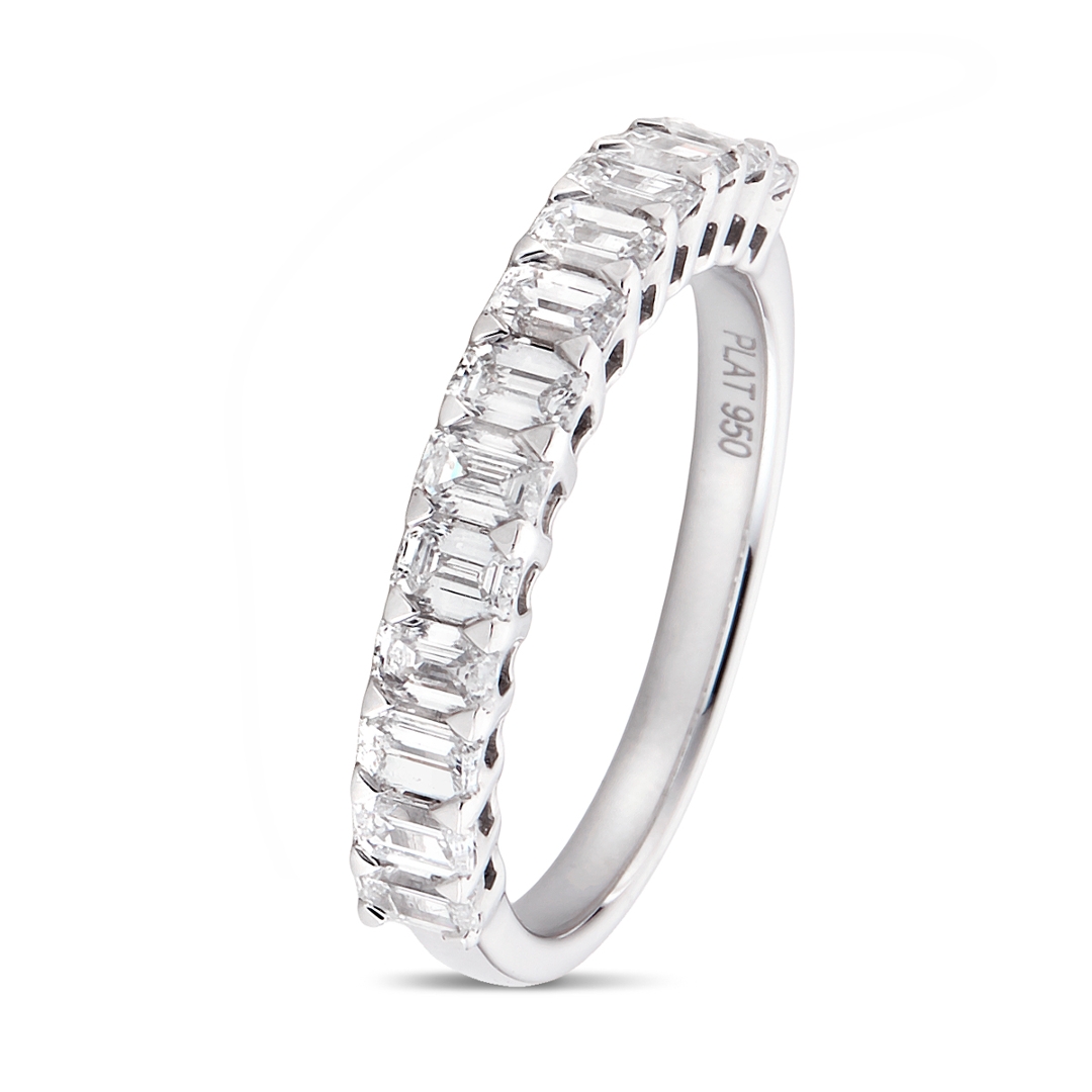 A brand new, unused, certified natural diamond cluster ring set with a cluster of emerald cut diamonds, set in platinum.