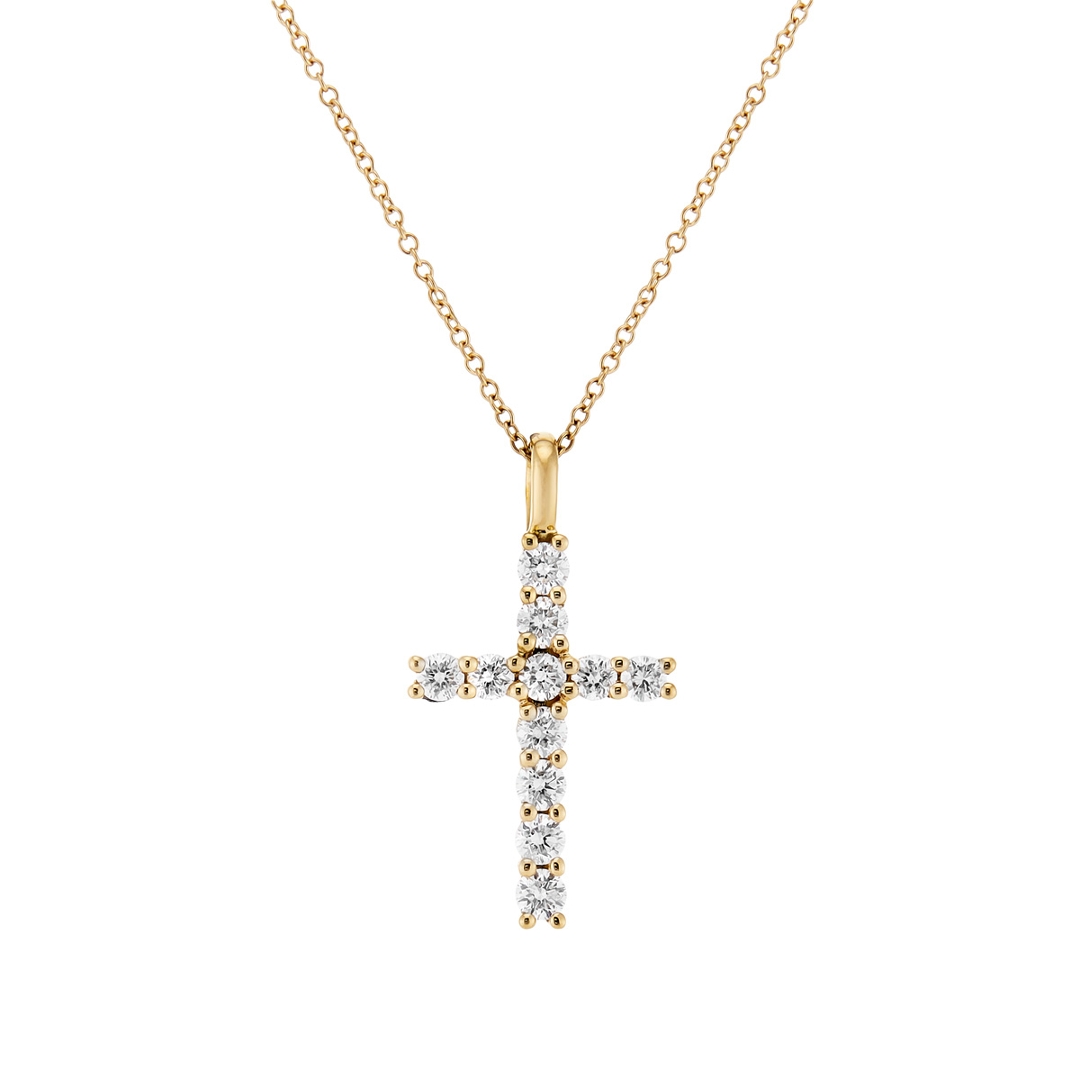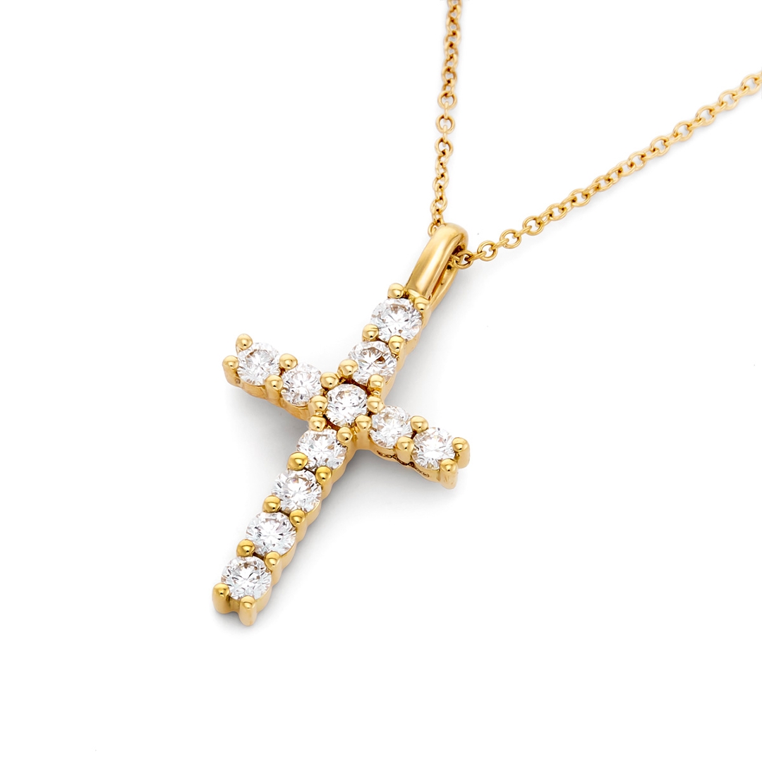 A brand new, unused, certified natural diamond cross pendant, set with a cluster of brilliant cut diamonds, set in 18ct yellow gold.