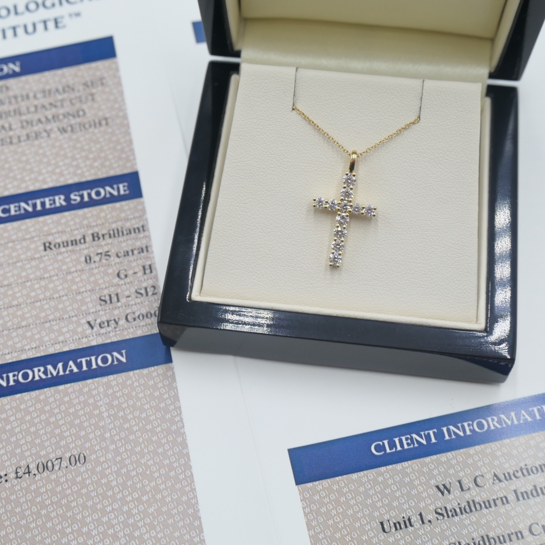 - > Natural Diamond Cross Pendant 0.75ct