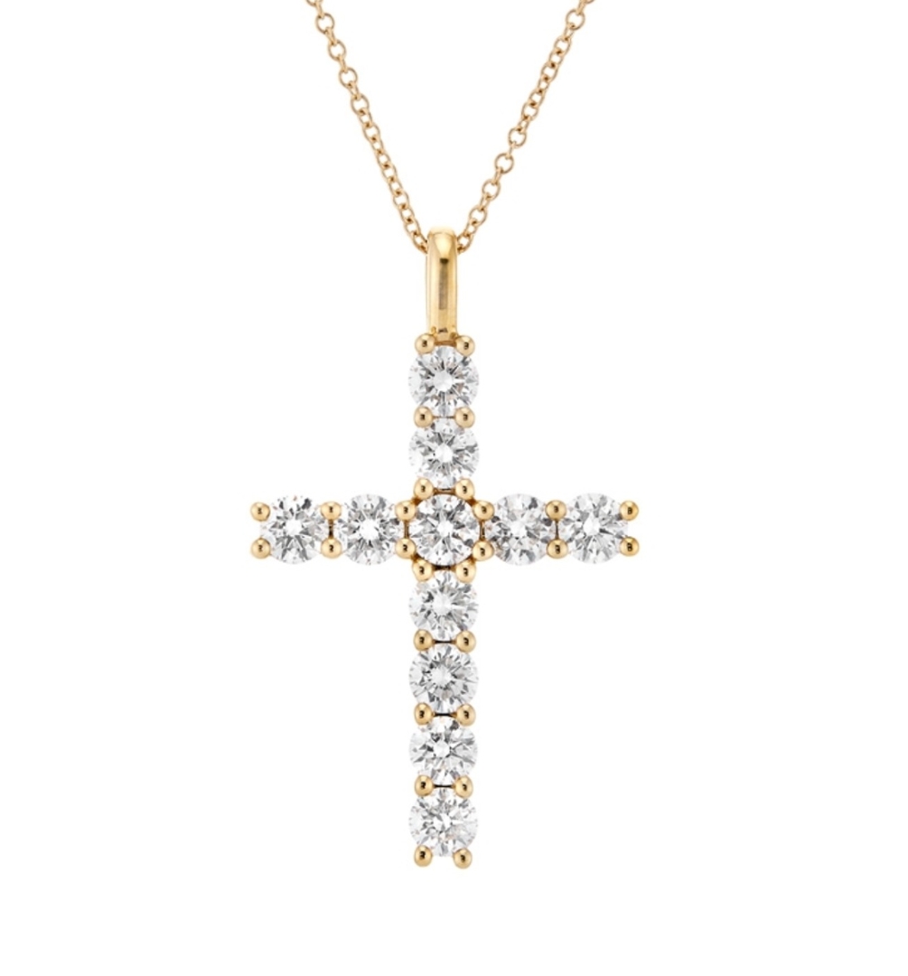 Crafted in rich 18ct yellow gold, weighing 4.09 grams, the warm, lustrous setting provides the perfect contrast to the radiant diamonds, creating a visually stunning piece that is both classic and contemporary. The iconic cross design offers deep personal symbolism, while the overall craftsmanship and diamond quality ensure it stands out as a piece of high-end fine jewellery.