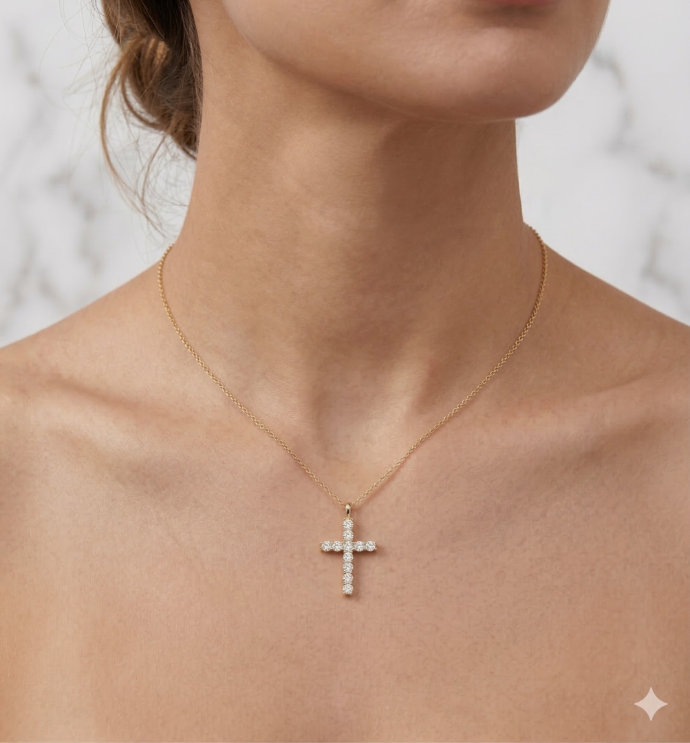 - > Natural Diamond Cross Pendant 1.50ct