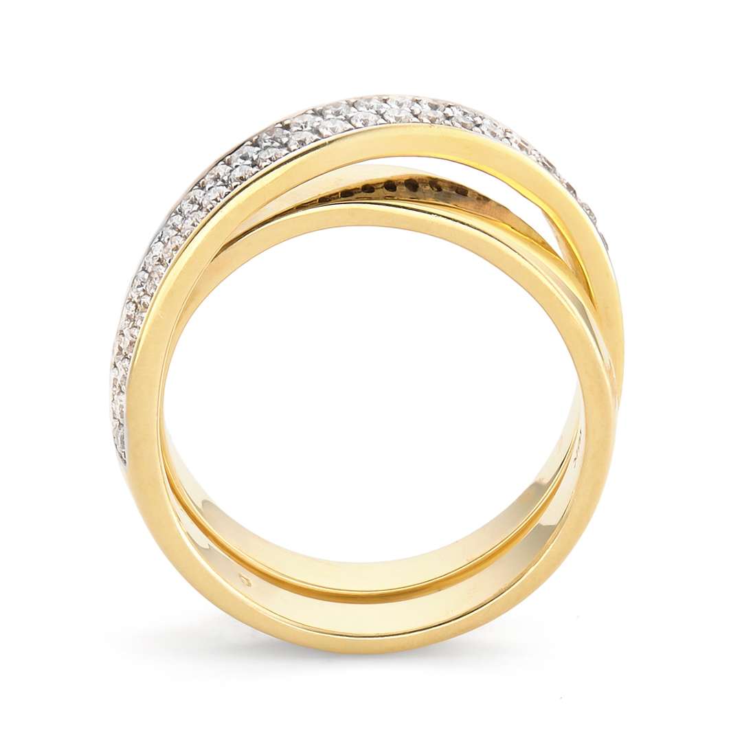 A brand new, unused, certified 18ct white & yellow gold natural diamond crossover-shaped cluster ring set with a cluster of brilliant cut diamonds.