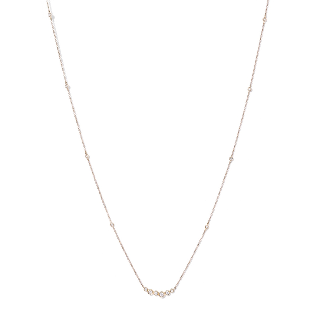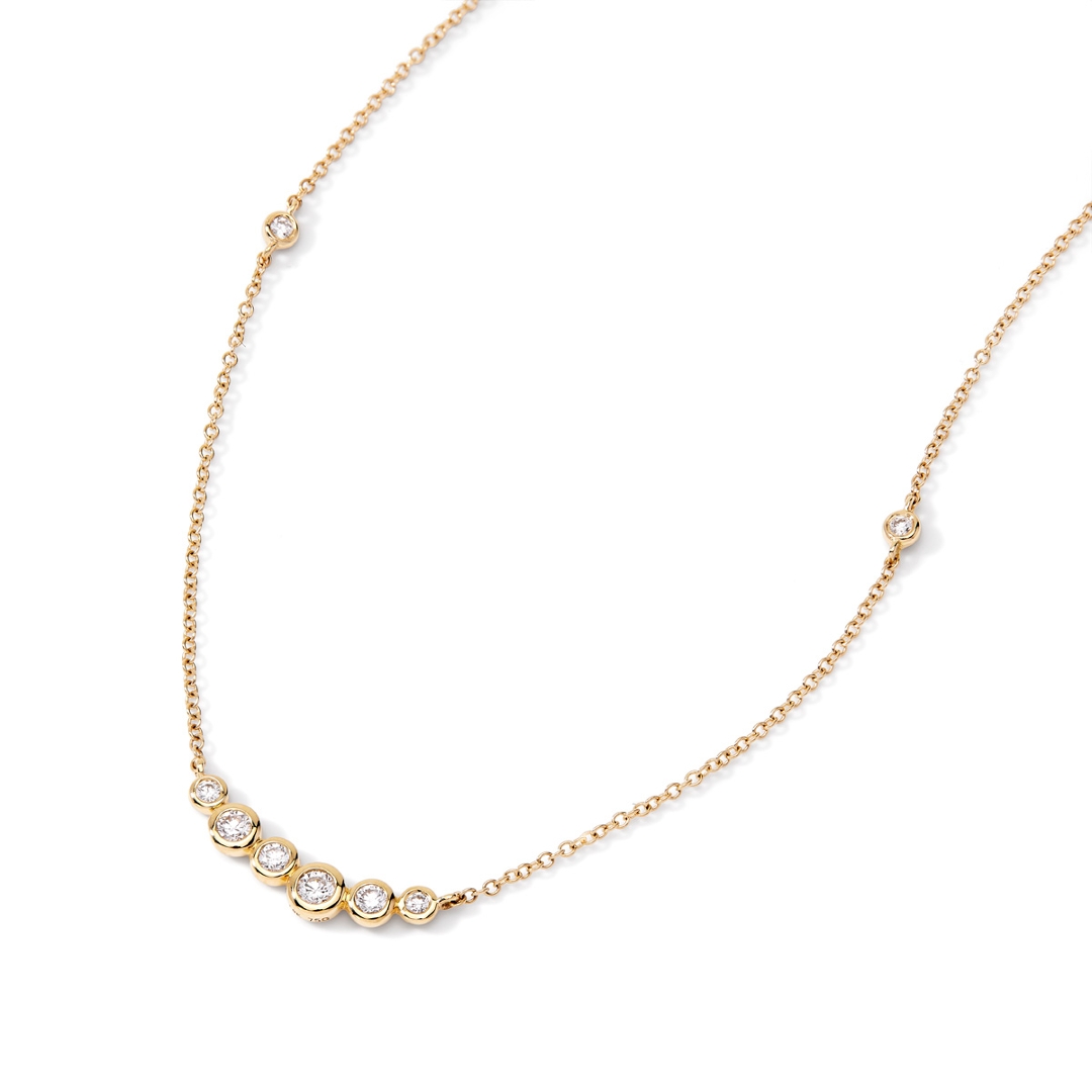 The rich tone of the 18ct yellow gold chain provides a warm and luxurious contrast to the crisp sparkle of the diamonds, creating a necklace that is both timeless and versatile. Whether worn alone for a subtle statement or layered with other pieces for added impact, it’s an ideal choice for those who appreciate understated sophistication and the authentic beauty of natural diamonds.
