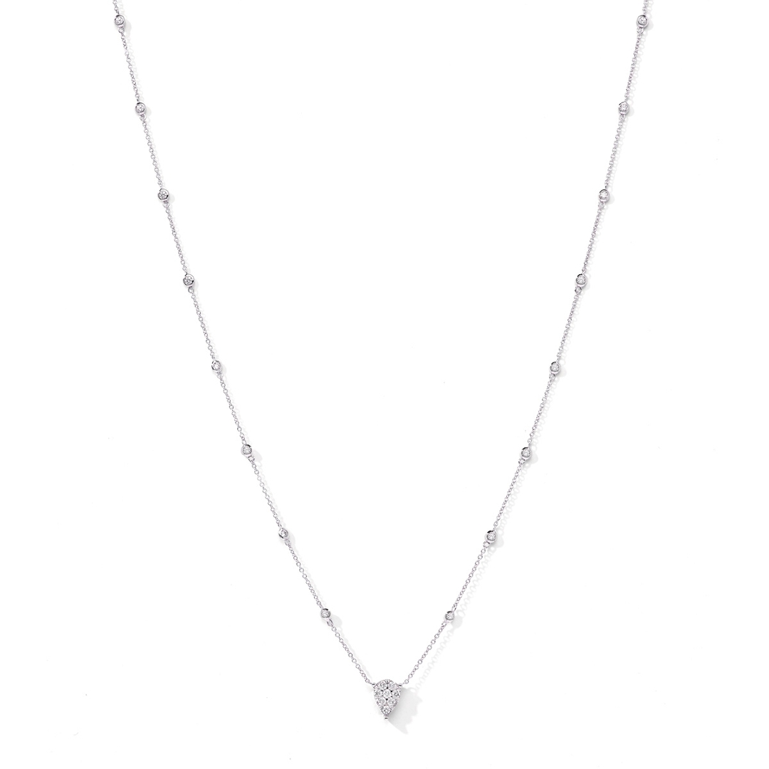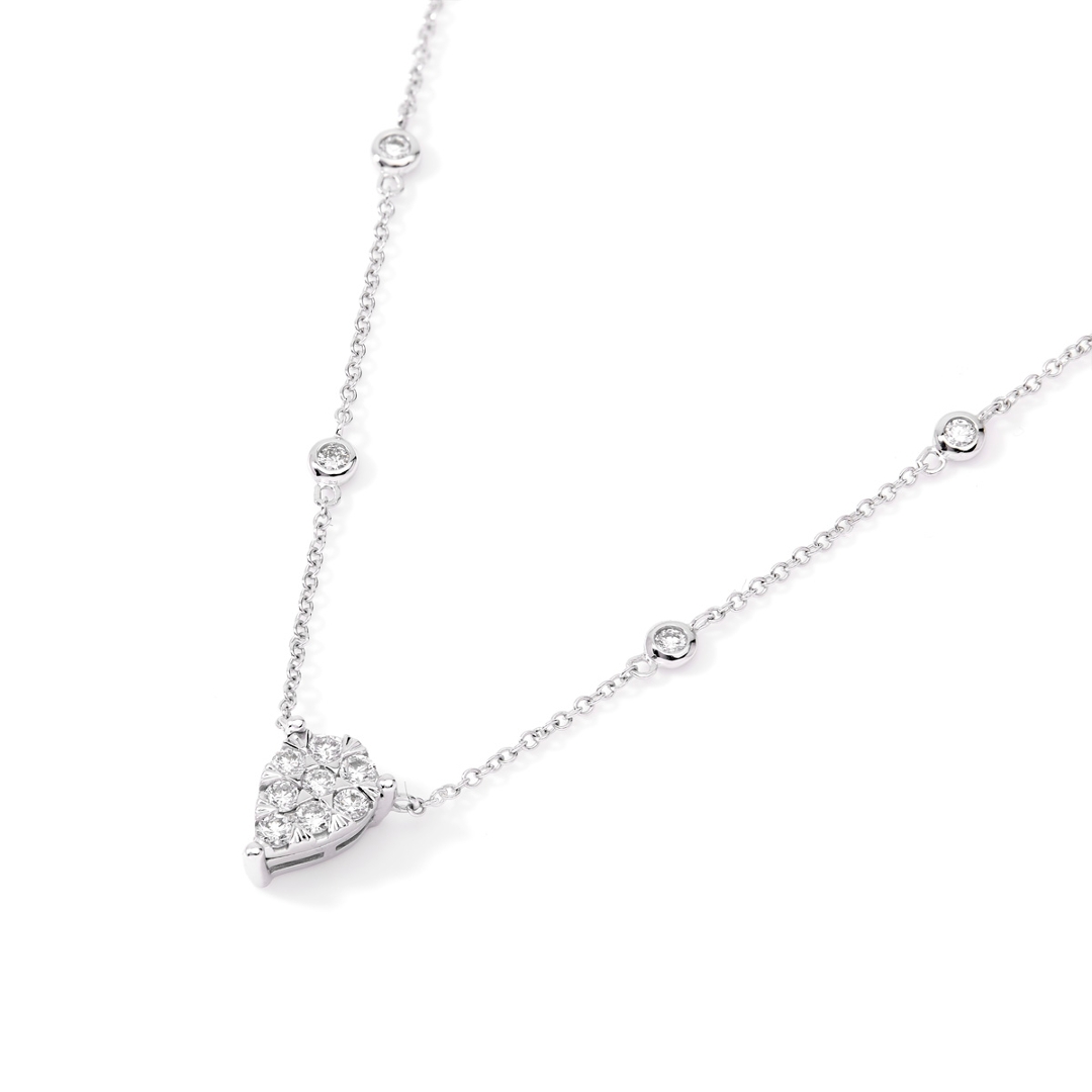 A brand-new, unused, certified natural diamond chain necklace, set with a cluster of brilliant-cut diamonds in a pear-shaped design, in 18ct white gold.