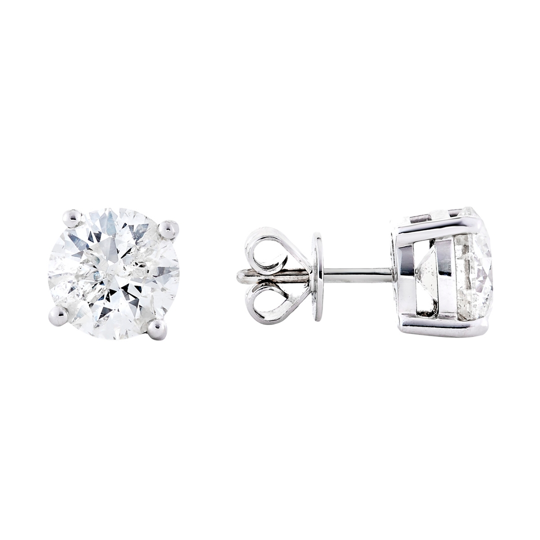 A brand-new, unused pair of exquisite 18ct white gold diamond solitaire earrings, showcasing the captivating beauty of natural diamonds in their most timeless form. Set with two brilliant-cut diamonds, these earrings offer an impressive total weight of 4.00 carats and deliver a stunning presence that catches the light with every movement. The diamonds, with a colour grade of H and clarity ranging from SI2 to SI3, have been carefully selected for their balance of size, sparkle, and character.