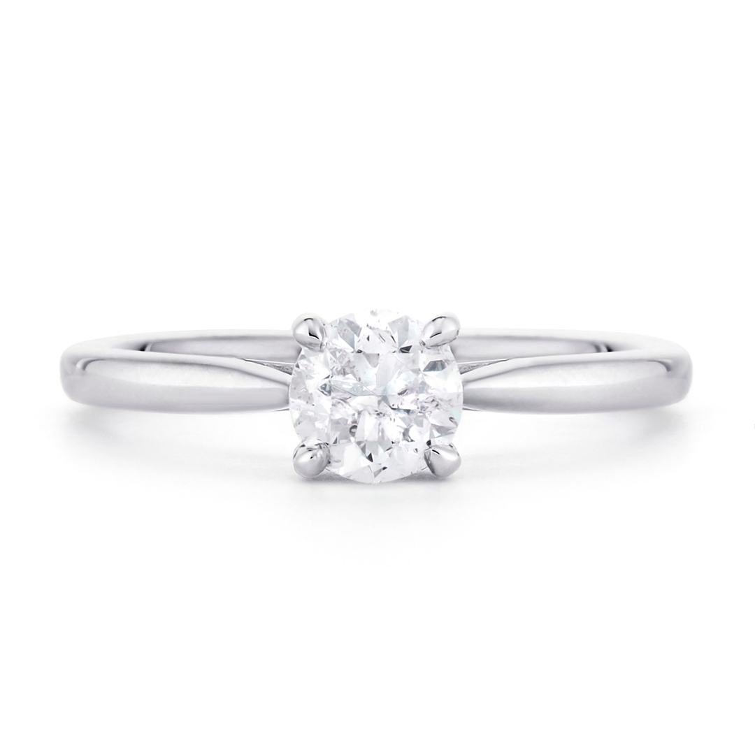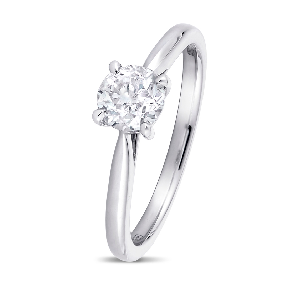 A brand new, unused, certified natural diamond solitaire engagement ring, set with one brilliant cut diamond at the centre, set in platinum.