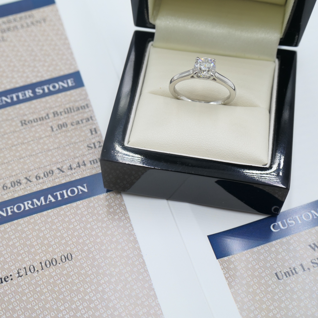 A brand-new, unused certified platinum natural diamond solitaire engagement ring, expertly designed to blend timeless simplicity with lasting impact. At the heart of this elegant piece is a 1.00ct brilliant-cut diamond, chosen for its classic proportions and captivating sparkle. With an H colour grade and SI2 clarity, the diamond offers a soft, near-colourless glow. At the same time, its natural inclusions remain gentle to the eye, giving the stone a unique character that reflects its authentic origin.