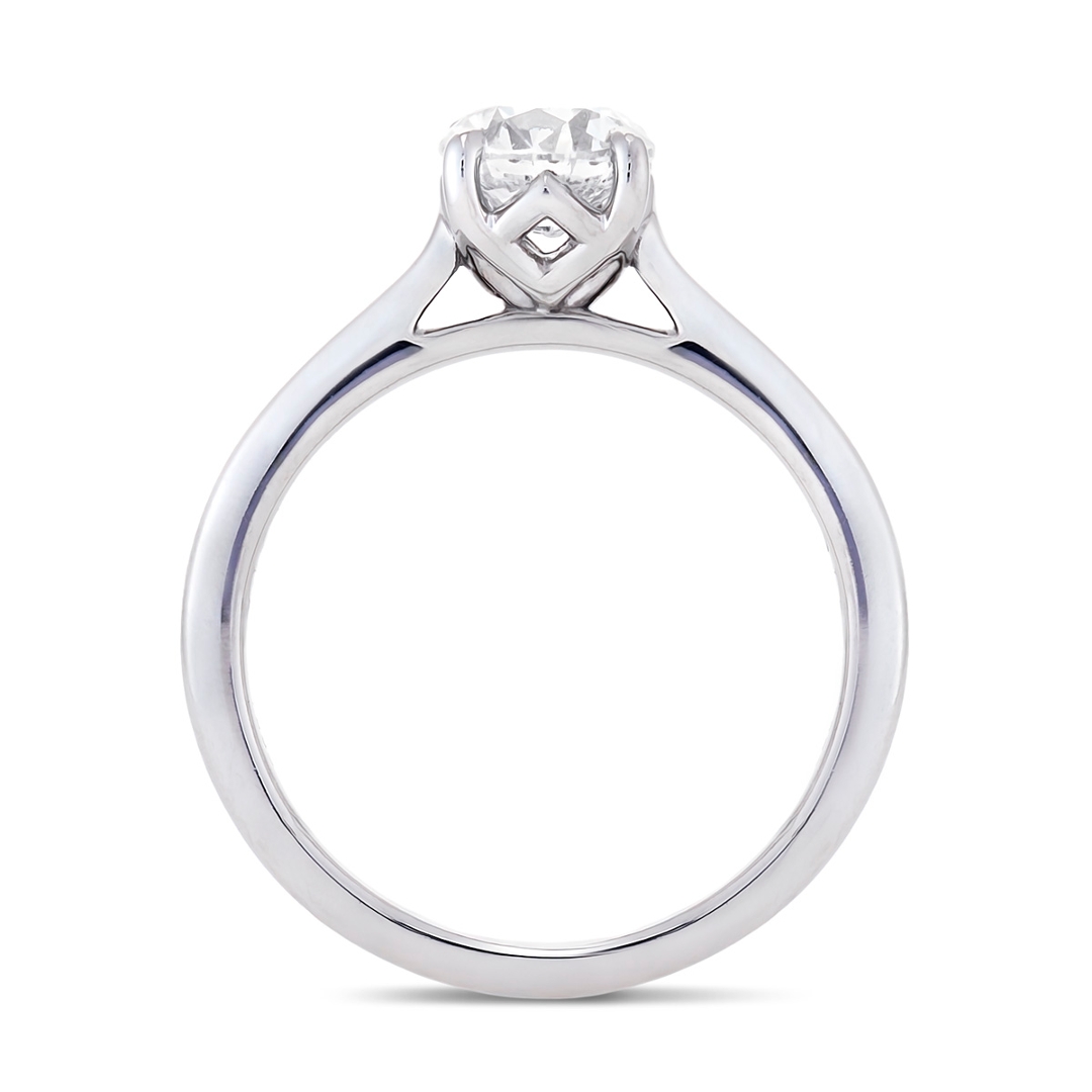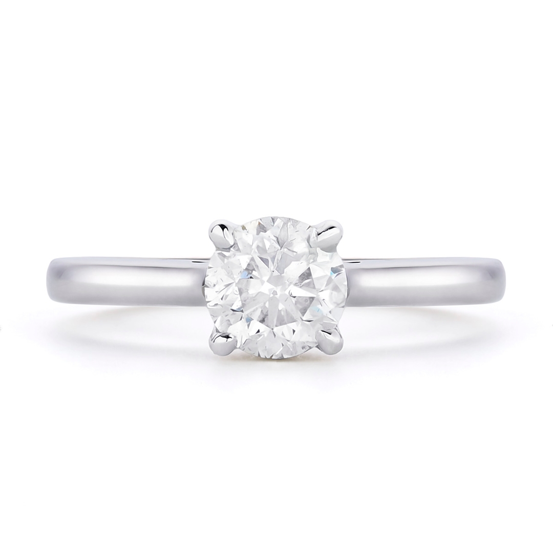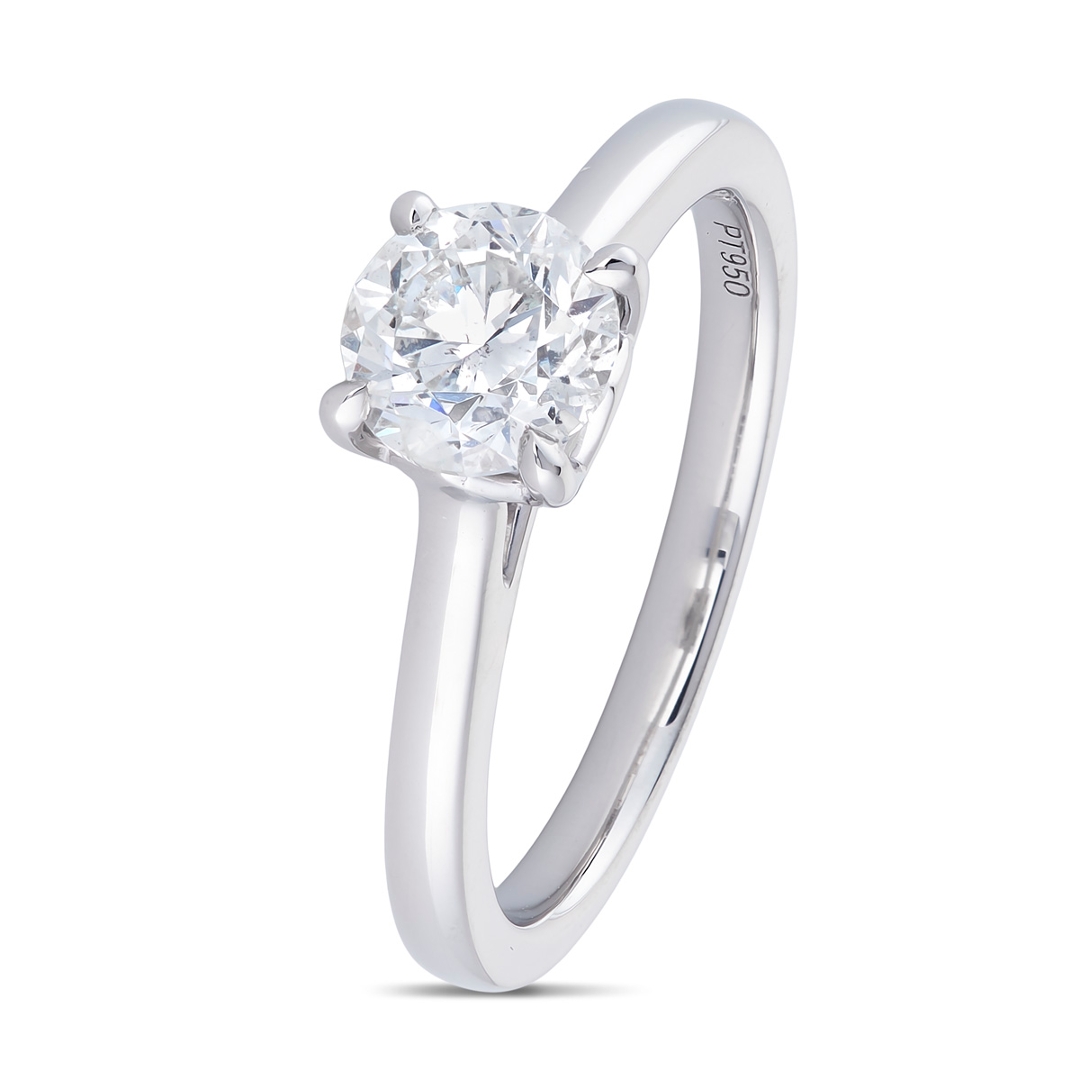A brand new, unused, certified natural diamond solitaire engagement ring, set with one brilliant cut diamond at the centre, set in platinum.