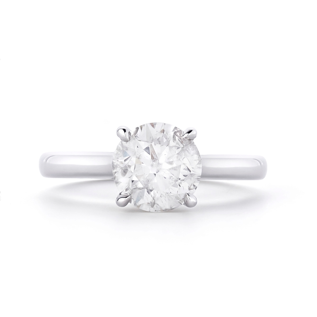 A brand new, unused, certified natural diamond solitaire engagement ring, set with one brilliant cut diamond at the centre, set in platinum.