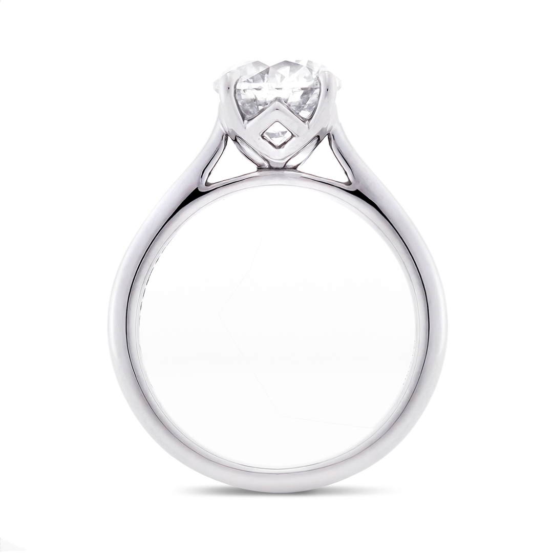 Crafted in platinum, the most enduring and prestigious of precious metals, the setting enhances the diamond’s natural luminosity while offering superior strength and longevity. The clean, minimalist design allows the diamond to take centre stage, ensuring a timeless aesthetic that will never fade from style. Every aspect of the ring’s composition reflects meticulous attention to detail and a dedication to perfection.