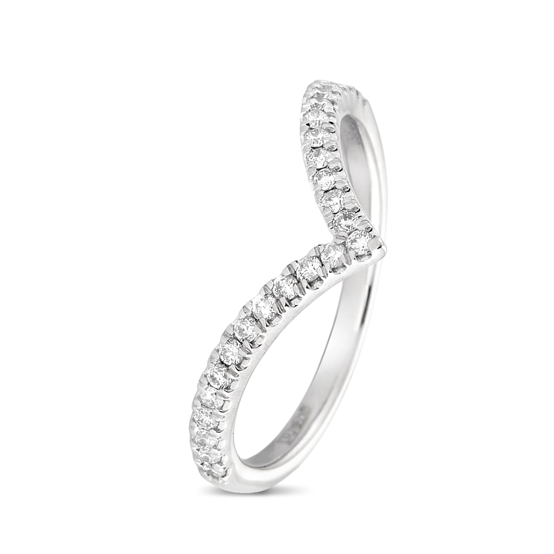 This elegant wishbone eternity ring harmoniously blends refined style with meaningful sentiment. Whether worn alone or paired with other pieces, it serves as a lasting reminder of love, commitment and timeless sophistication — a delicate yet valuable addition to any fine jewellery collection.