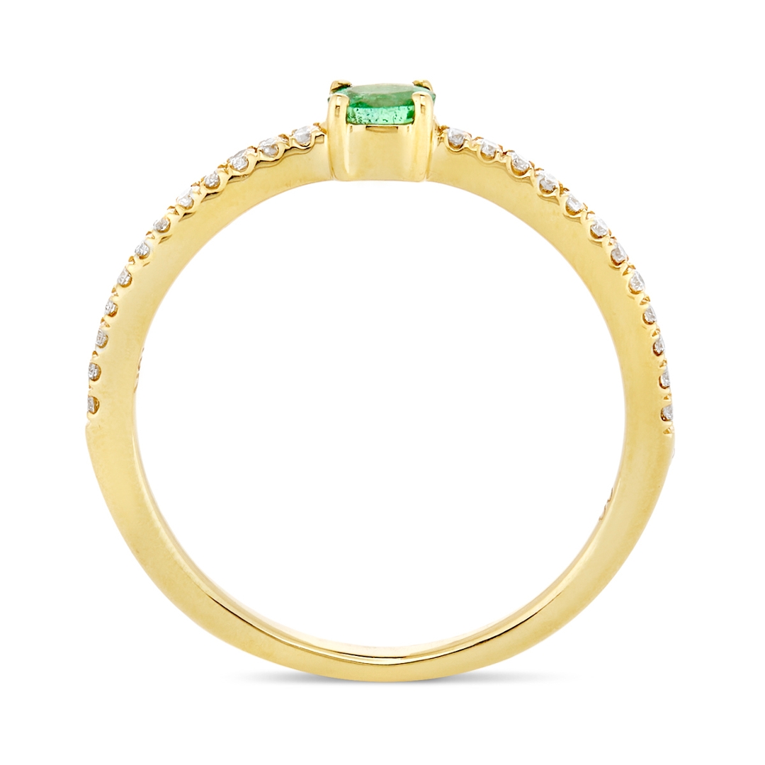 Emeralds are among the most revered gemstones in fine jewellery, admired for their rarity and the depth of colour that symbolises renewal and prosperity. When paired with diamonds, they create an enchanting contrast between rich colour and radiant brilliance. This elegant ring, with its slender 18ct yellow gold band, offers both subtle sophistication and enduring charm, making it a versatile piece suitable for everyday wear or special occasions.