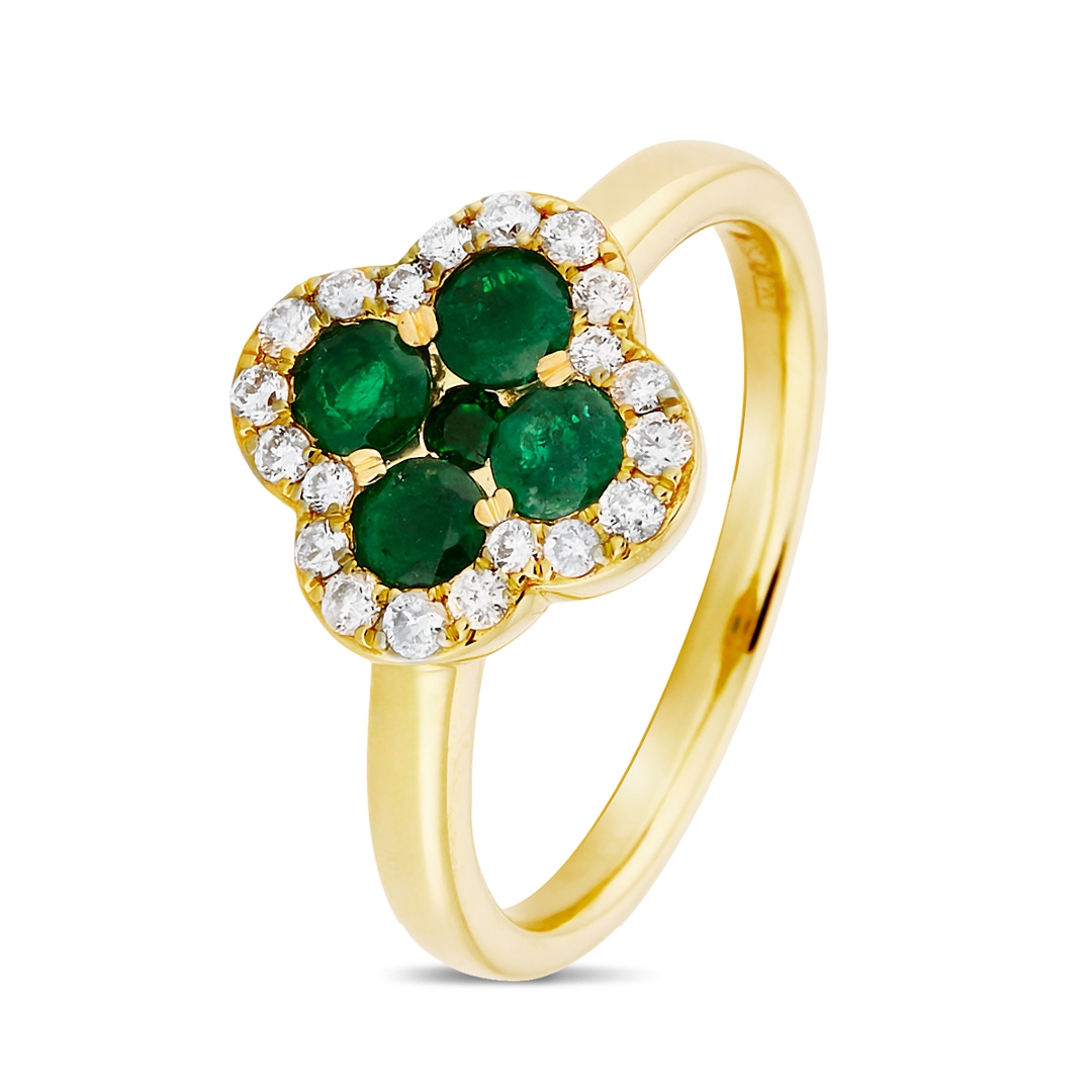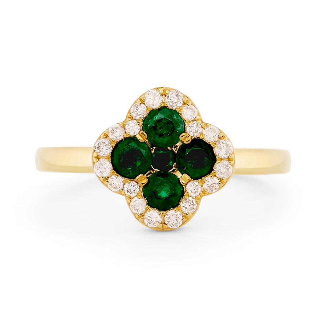 - > Natural Emerald 0.51ct & Diamond 0.22ct Four Leaf Clover Shaped Cluster Ring