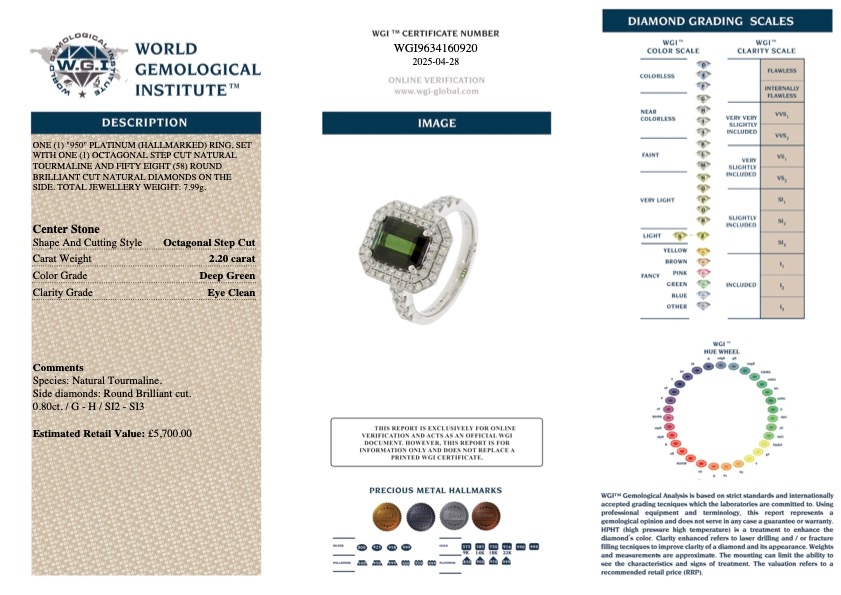 Crafted in premium platinum, the setting combines durability with a refined finish, allowing the colours and sparkle to shine without distraction. Accompanied by a certified valuation of £5,700.00, this exquisite ring celebrates natural beauty, expert craftsmanship, and bold style. Perfect for those who appreciate gemstone artistry and timeless elegance, it’s a meaningful piece ready to be treasured for a lifetime.