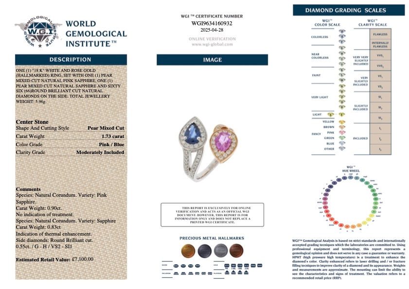 Crafted in 18ct white and rose gold for contrast, warmth, and lasting elegance, the ring weighs 5.96g. With a valuation of £7,100.00, it presents an exceptional opportunity to acquire a distinctive toi et moi design that blends colour, craftsmanship and enduring value.