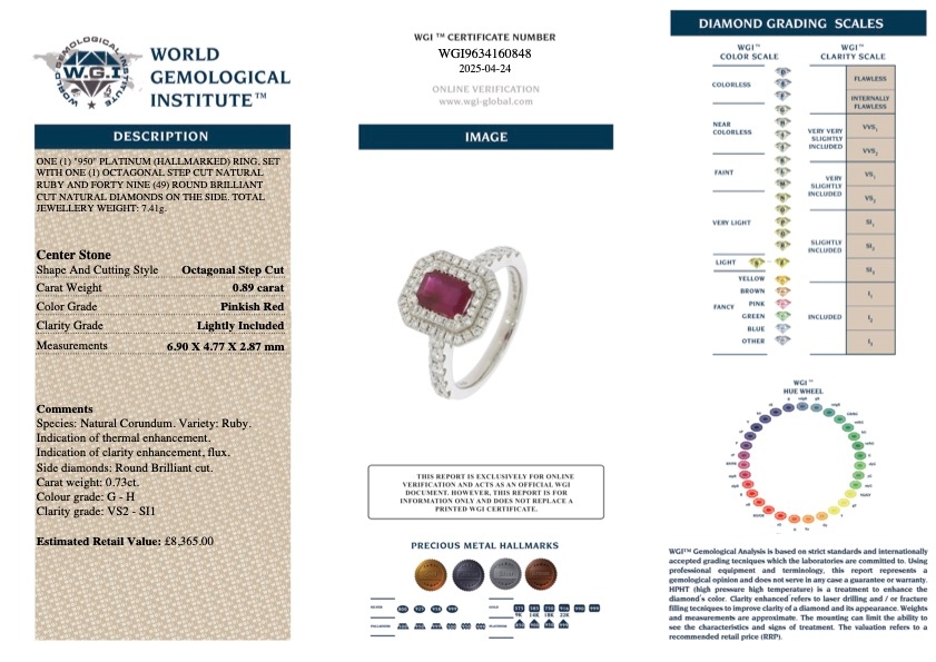 Accompanied by an independent valuation of £8,365.00, this exceptional ring stands as a statement of beauty and value. Natural diamonds continue to represent enduring prestige and investment appeal, while the ruby’s rarity and colour intensity add depth and individuality — a creation to be admired and treasured.