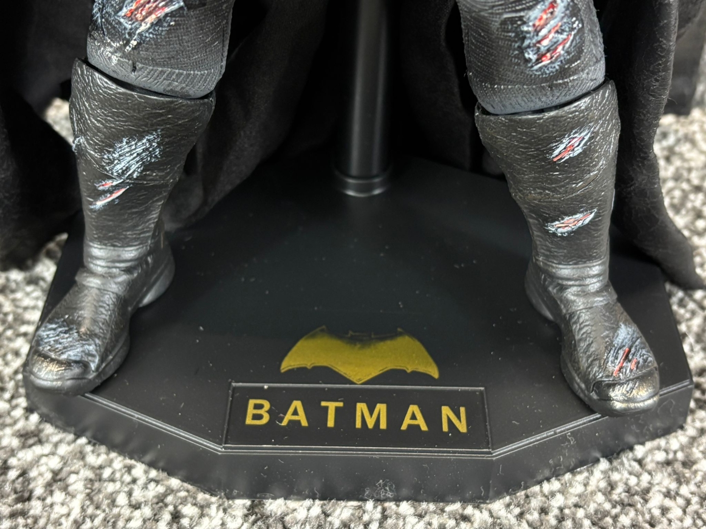 A 1/6th scale sculpture of Batman on a stand. Approximately 30cm height, 16cm width, 12cm depth.