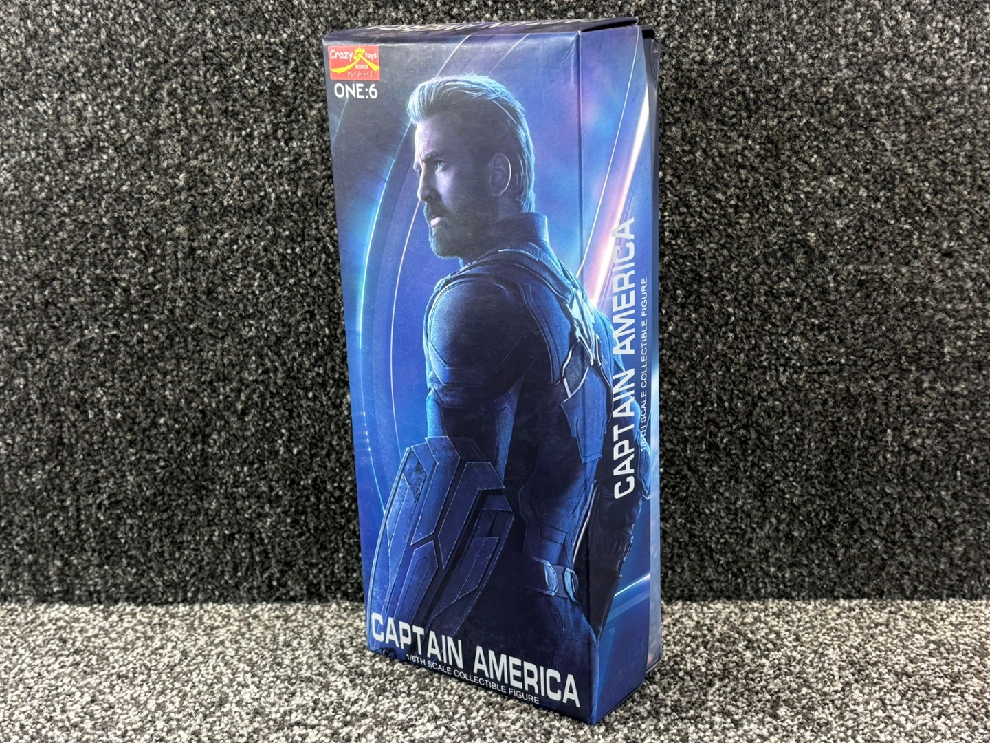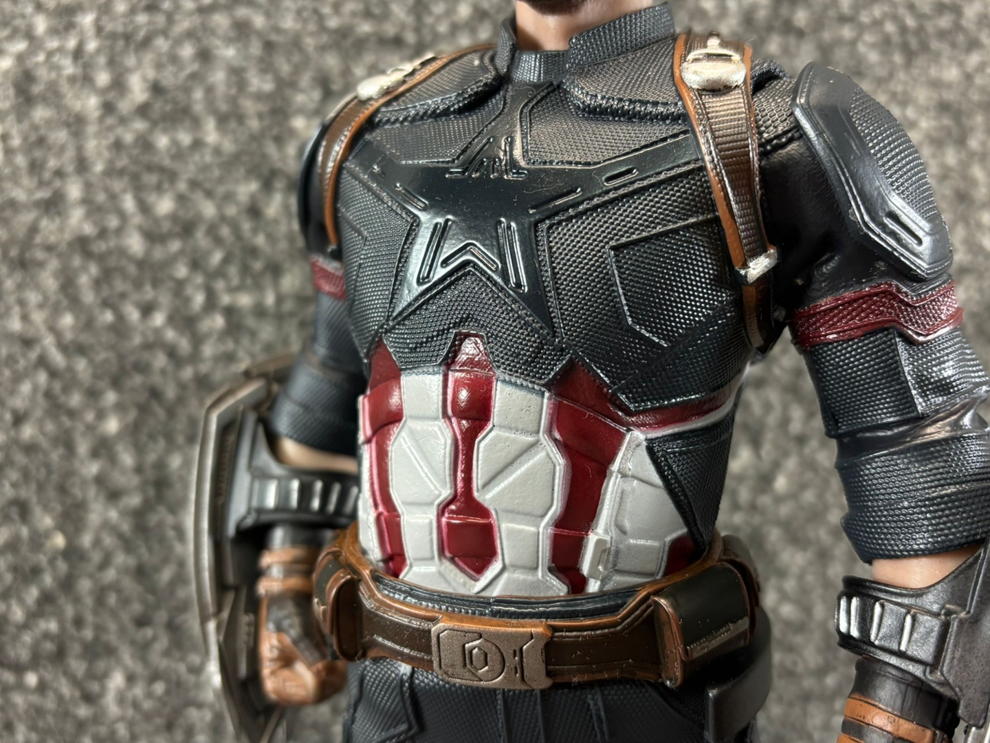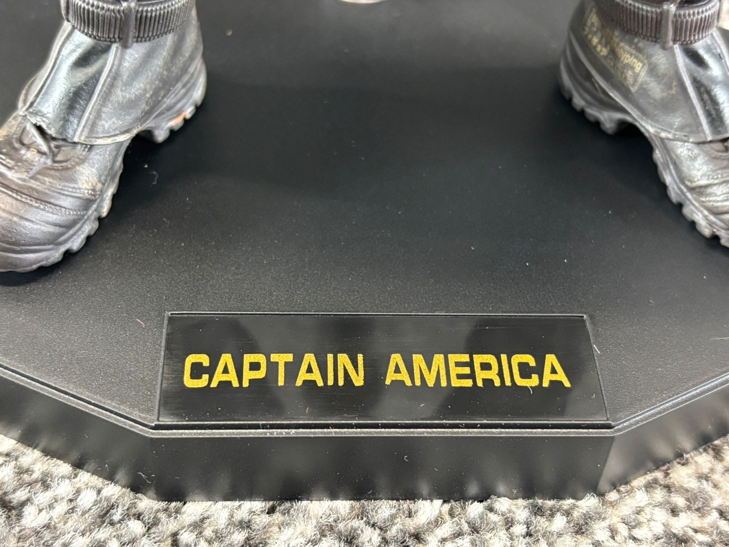 A 1/6th scale sculpture of Captain America. Approximately 30cm height, 16cm width, 12cm depth.