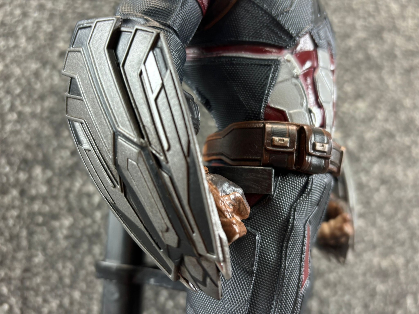 A 1/6th scale sculpture of Captain America, a tribute to the unwavering spirit of the Marvel Universe’s greatest leader. Measuring approximately 30cm tall, 16cm wide, and 12cm deep, this powerful piece captures Steve Rogers in his later-era battle suit—complete with rich textures, red and silver torso striping, and the iconic star centred on his chestplate. Every inch of the figure radiates resilience, duty, and heroic resolve.