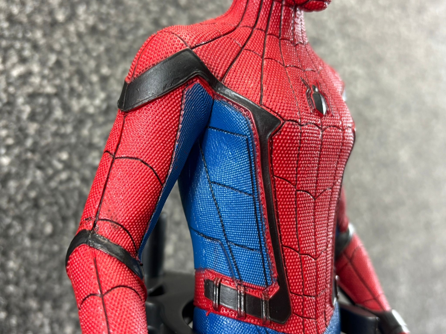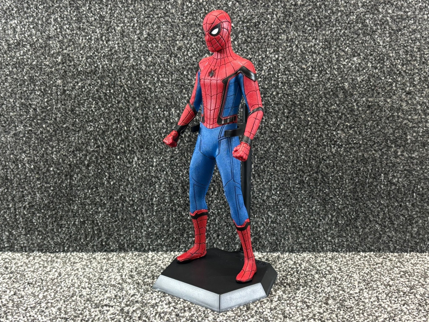 A 1/6th scale sculpture of Spiderman. Approximately 30cm height, 16cm width, 12cm depth.