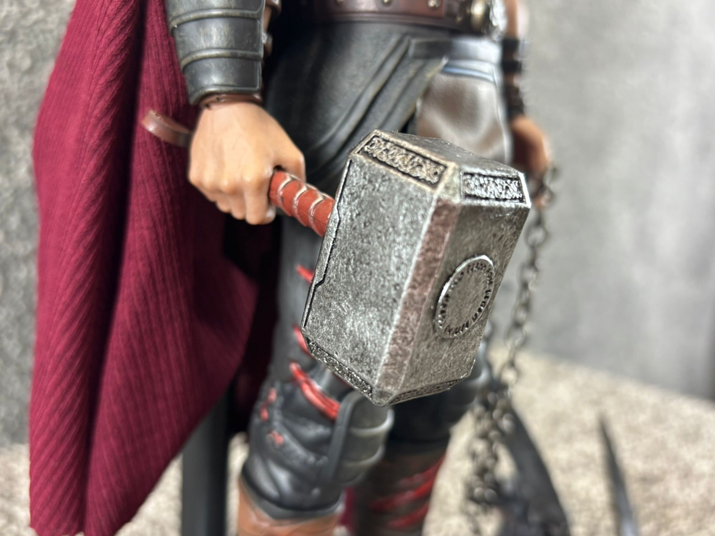 A 1/6th scale sculpture of Thor, the mighty Avenger! Standing an impressive 30cm tall with a width of 16cm and a depth of 12cm, this striking figure captures the thunderous presence of the God of Thunder in vivid detail. From the sculpted muscles and battle-worn armour to the flowing crimson cape and iconic Mjolnir hammer in hand, every inch of this collectable radiates raw Asgardian strength and cinematic authenticity.