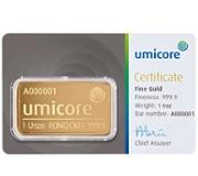 A 20 Gram Umicore Gold Mint Bar crafted in Belgium, struck from 999.9% fine 24 carat gold and containing a full 20 grams of pure gold content. Produced by Umicore, one of Europe’s most respected precious metals refiners, this bar represents exceptional quality, accuracy and global recognition within the bullion market.