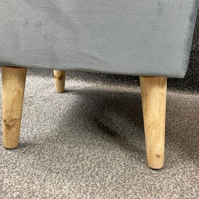 - > A Pair of Grey French Velvet Square Storage Stools on Wooden Legs