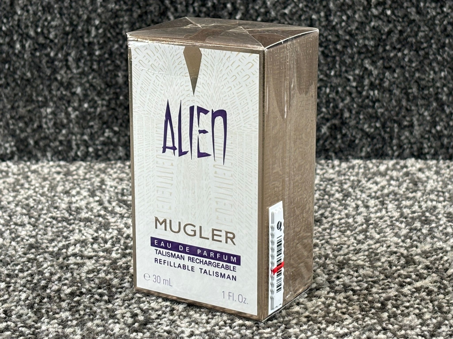 A 30ml bottle of Mugler Alien Eau De Parfum, presented in its original presentation box and showcasing one of the most distinctive and iconic fragrances in modern perfumery. Celebrated for its bold identity and unmistakable presence, Alien offers a powerful yet refined scent that has become instantly recognisable.