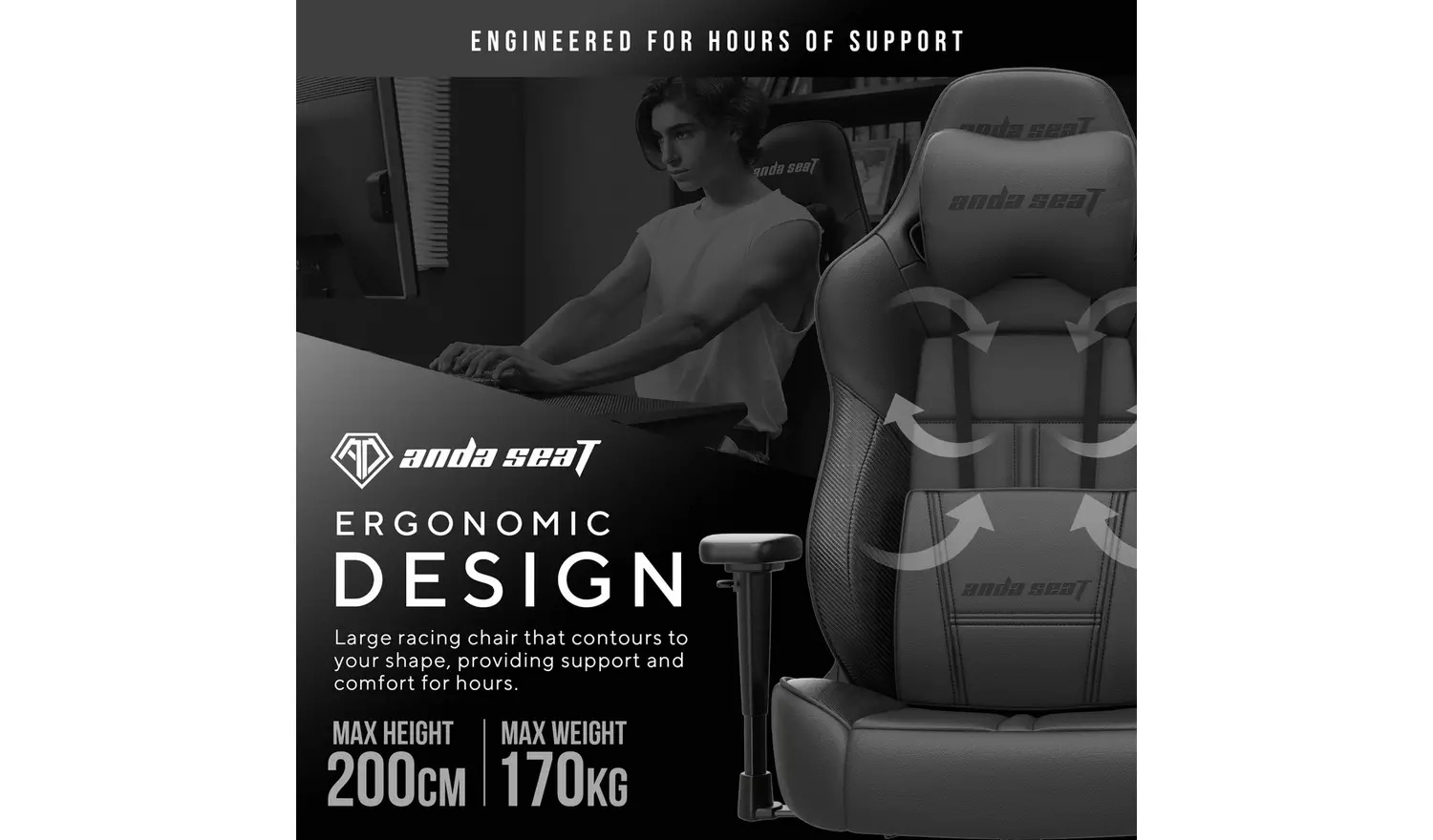 An Anda Seat Dark Demon Dragon gaming chair in black offers a commanding blend of comfort, durability, and striking design, making it an excellent addition to any gaming or office setup. Crafted with high-quality faux leather upholstery, it delivers a sleek, professional appearance while remaining easy to maintain. The racing-style silhouette provides a supportive and immersive seating experience, ideal for extended gaming sessions or long working hours.