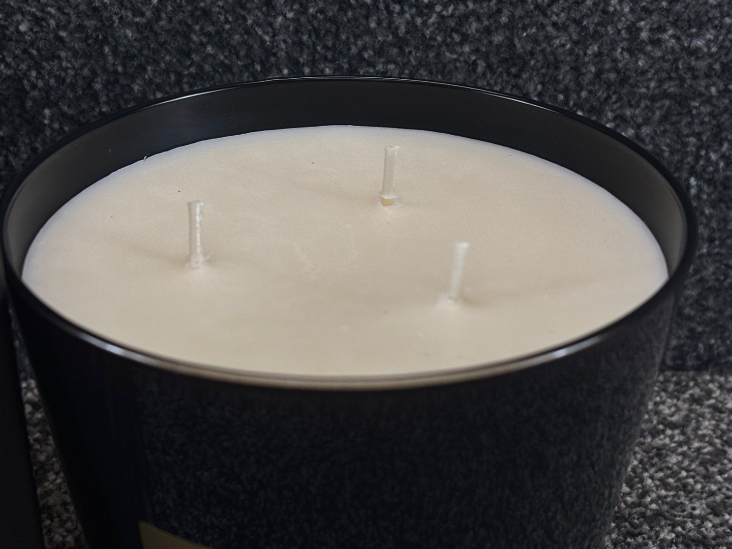 An Antiga 1860 Amber & Vanilla Luxury Scented Candle, weighing an impressive 1.27kg, this piece is crafted to elevate any interior with both style and fragrance. Housed in a sleek black glass vessel with a gold label, it exudes a refined, modern elegance that makes it ideal for gifting or enhancing a sophisticated living space. The three-wick design ensures an even burn and a fuller fragrance release, creating an inviting ambience from the moment it is lit.