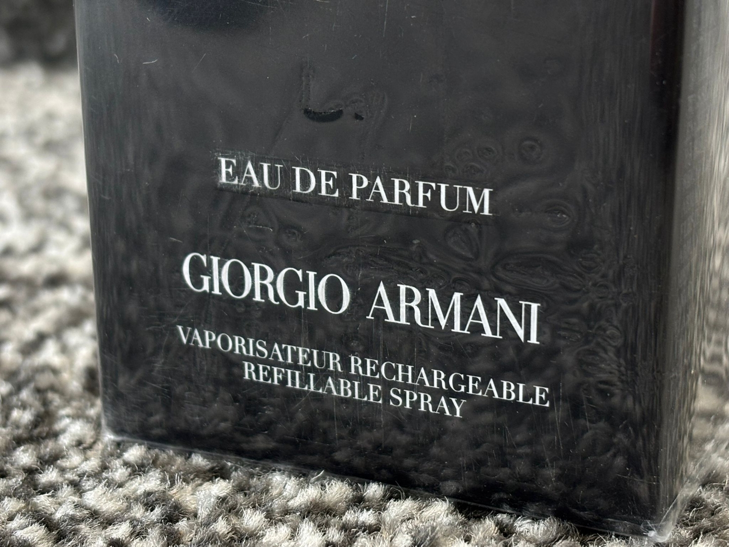 A bottle of Armani - Armani Code Eau De Parfum in a presentation box.