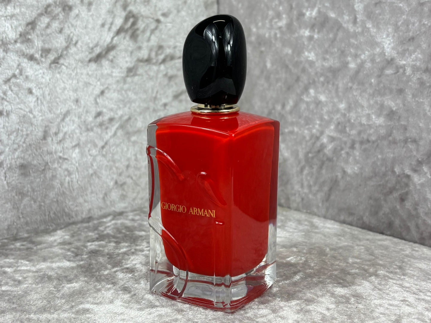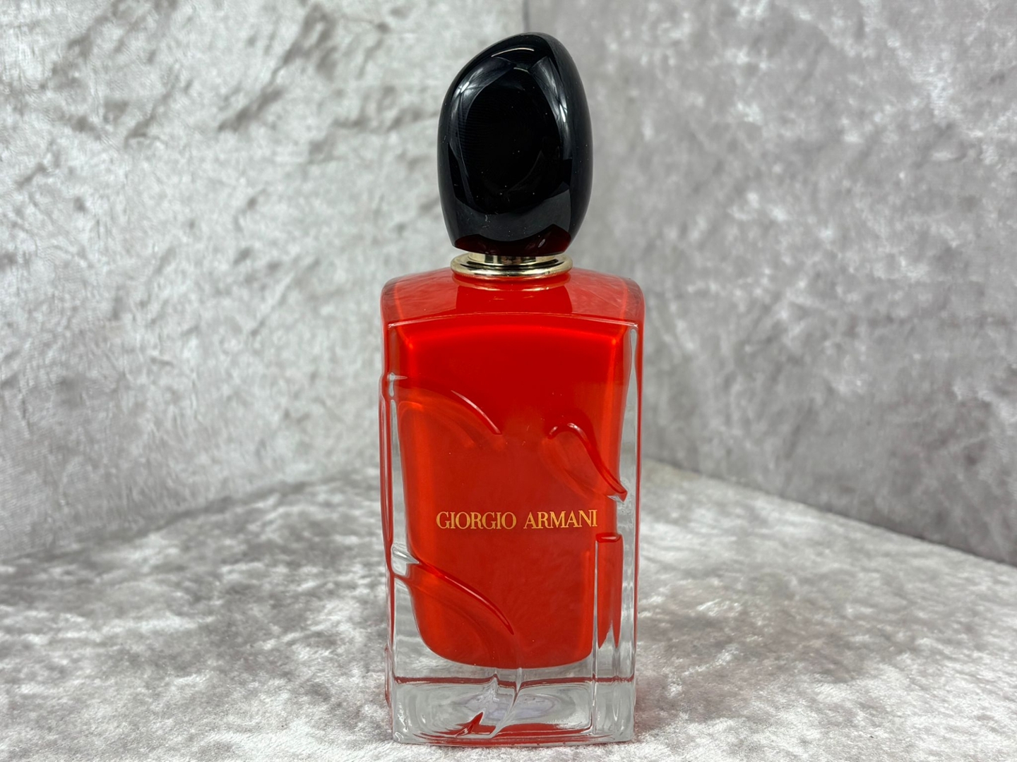 A 100ml bottle of Giorgio Armani Sì Passione Eau De Parfum, a bold and vibrant fragrance that captures confidence and modern femininity. It opens with a lively burst of blackcurrant and pear, delivering a fresh yet fruity introduction that feels energetic, elegant, and instantly captivating.