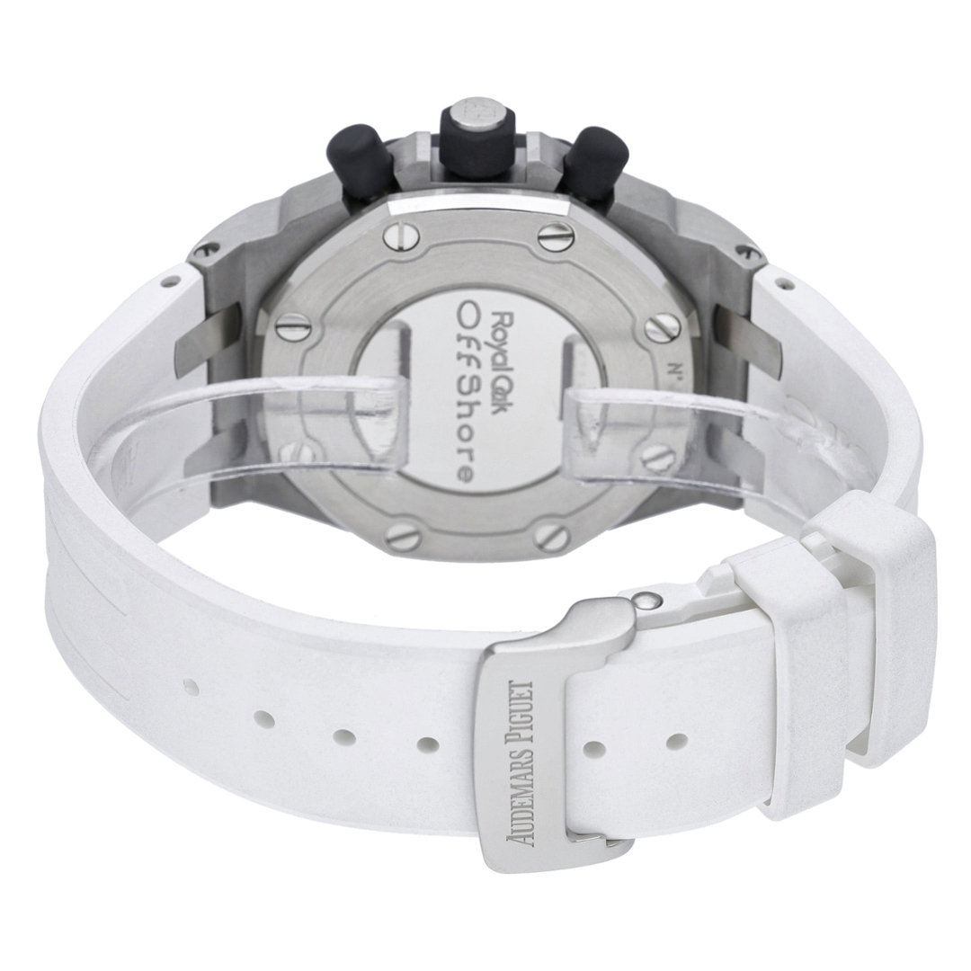 Powered by the Audemars Piguet Calibre 3126/3840 automatic chronograph movement, this model delivers reliable performance with a power reserve of approximately 50 hours. The calibre combines precision timekeeping with the durability expected from the Royal Oak Offshore line, making it equally suited to daily wear or special occasions.