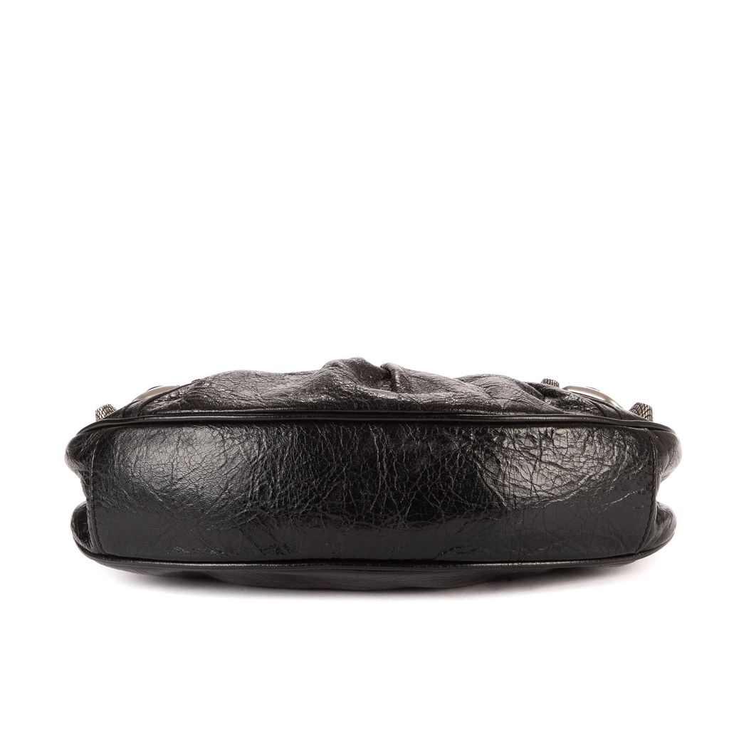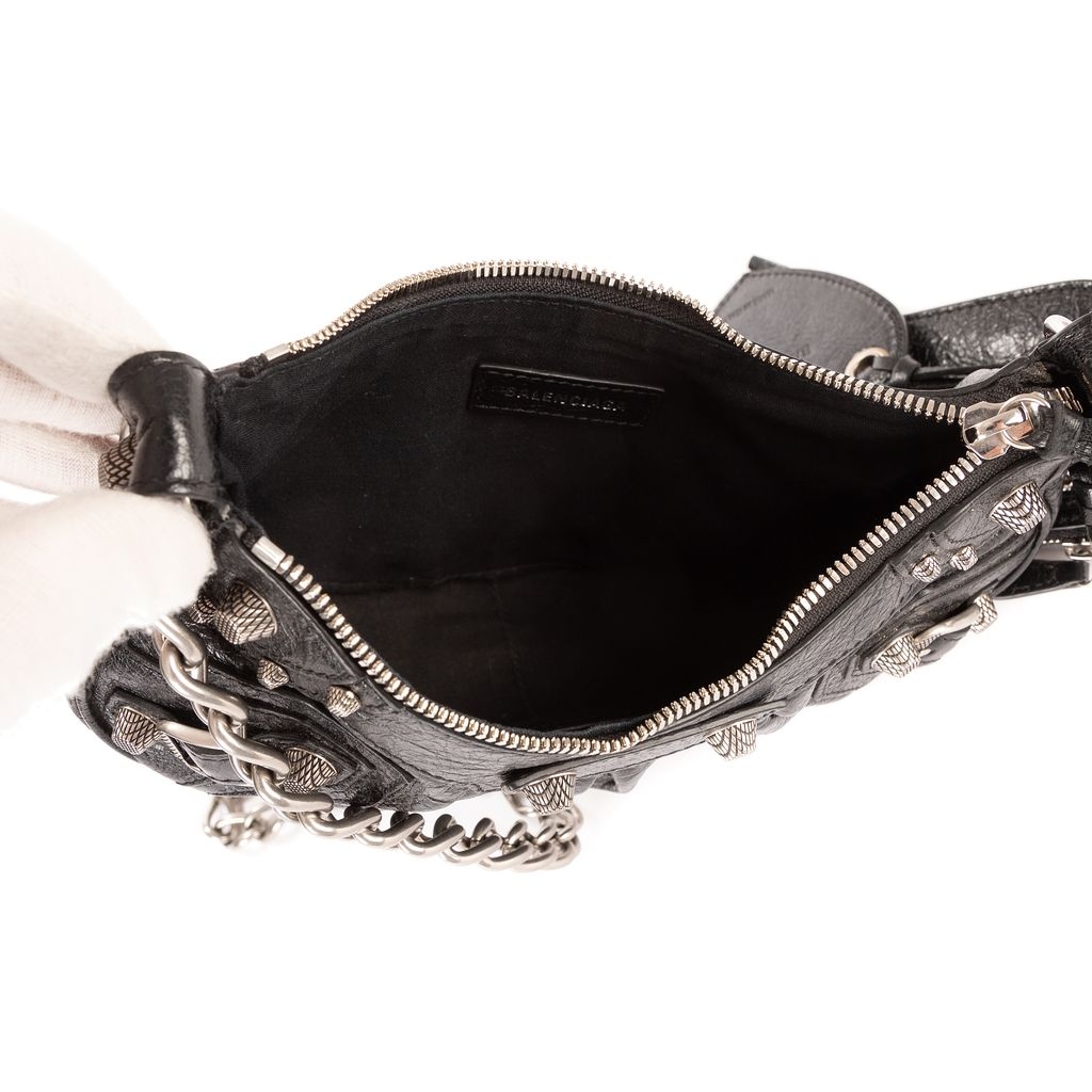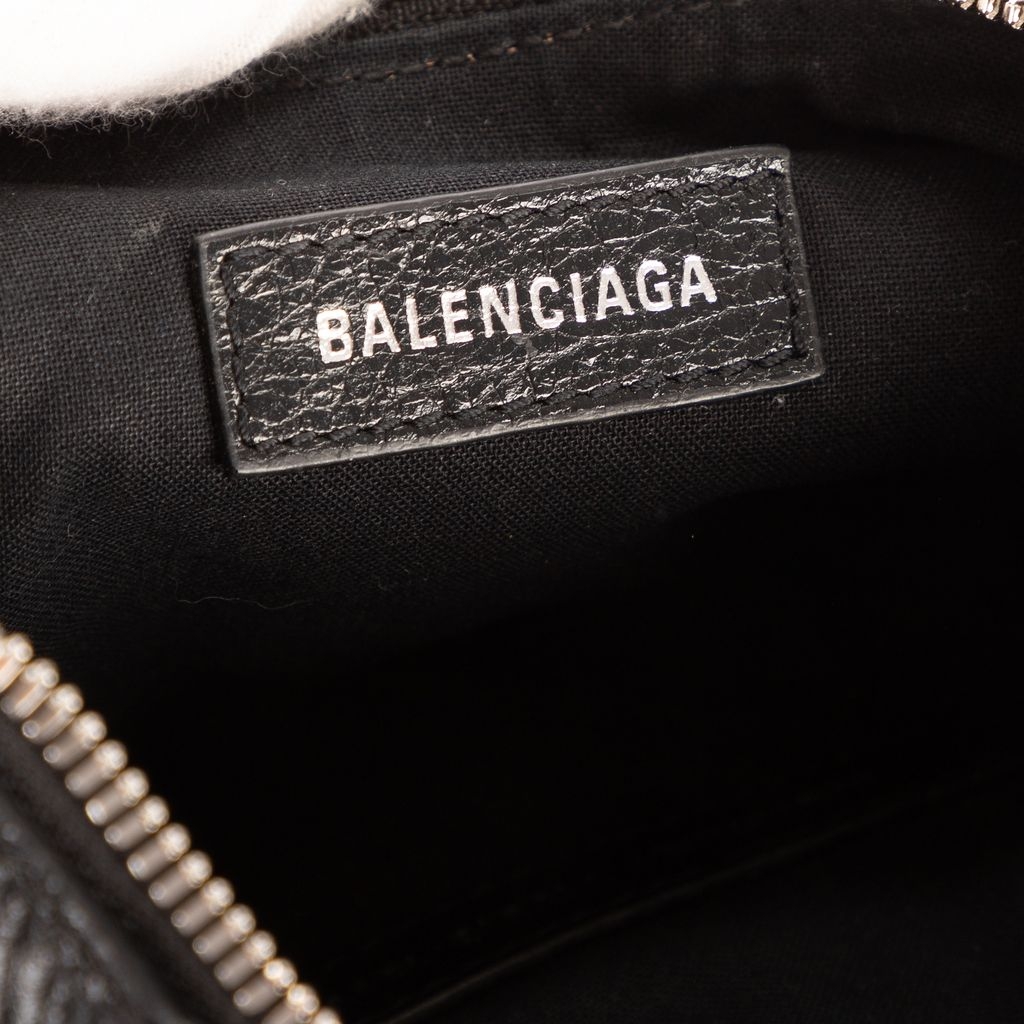 A vintage Balenciaga black calf leather Chain Strap Pochette bag with a certificate of authenticity, Approximately 12cm height, 22cm width.