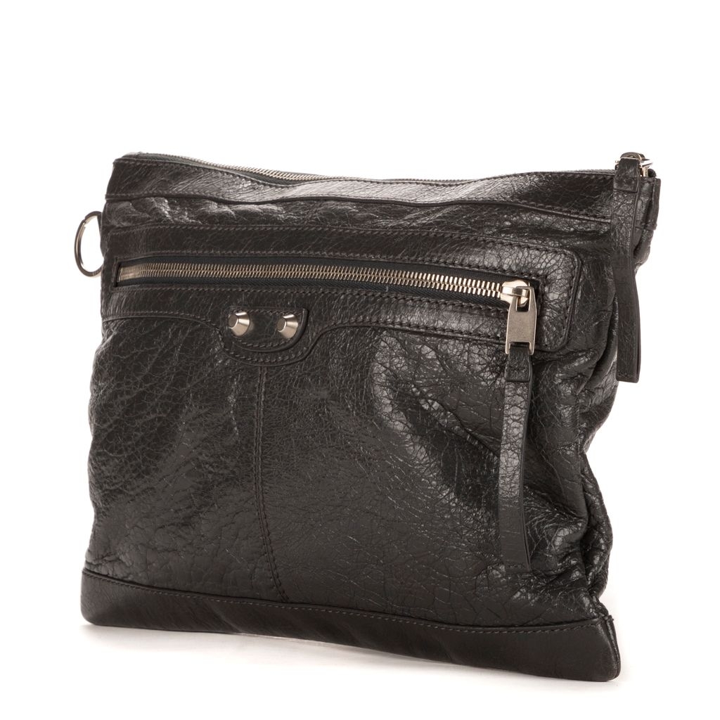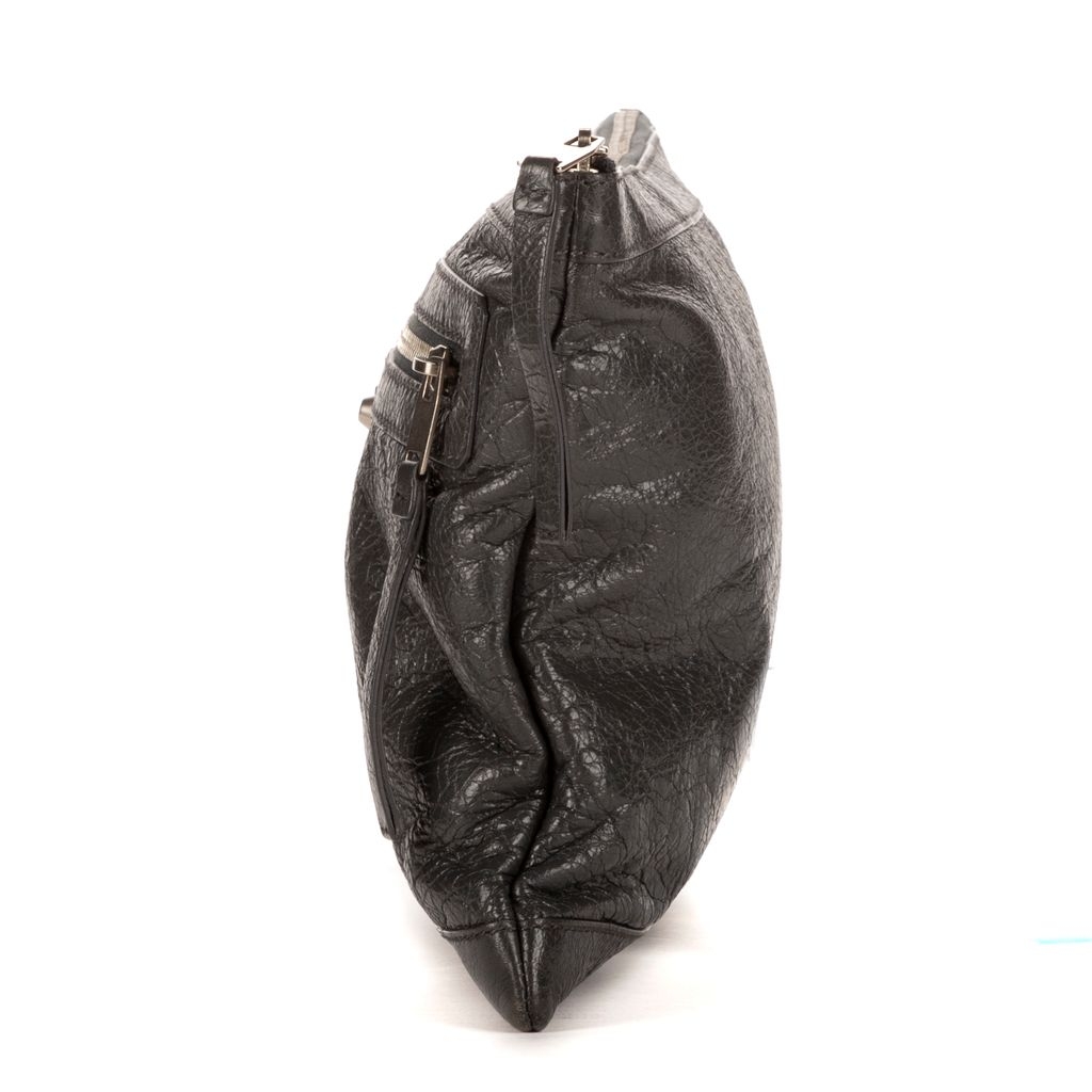 A vintage Balenciaga grey calf leather Classic Clip Pouch bag with a certificate of authenticity, Approximately 22cm height, 32cm width.