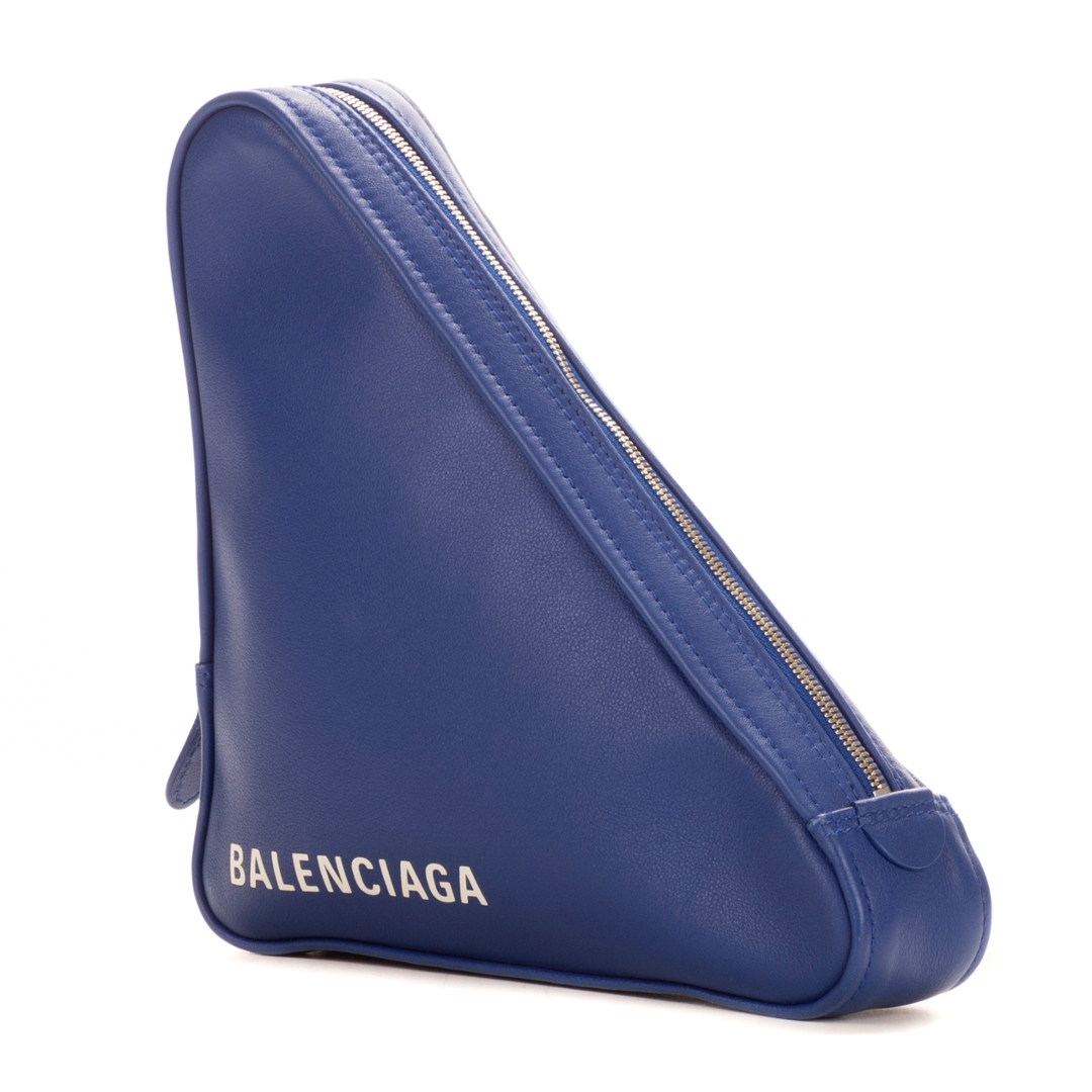 Compact and stylish, this pouch is perfectly proportioned for carrying essentials, with a zip closure ensuring belongings are kept secure. Its structured triangular form sets it apart from more traditional silhouettes, making it a true statement accessory. The smooth leather finish and sharp lines highlight Balenciaga’s innovative approach to fashion, while still offering everyday practicality.