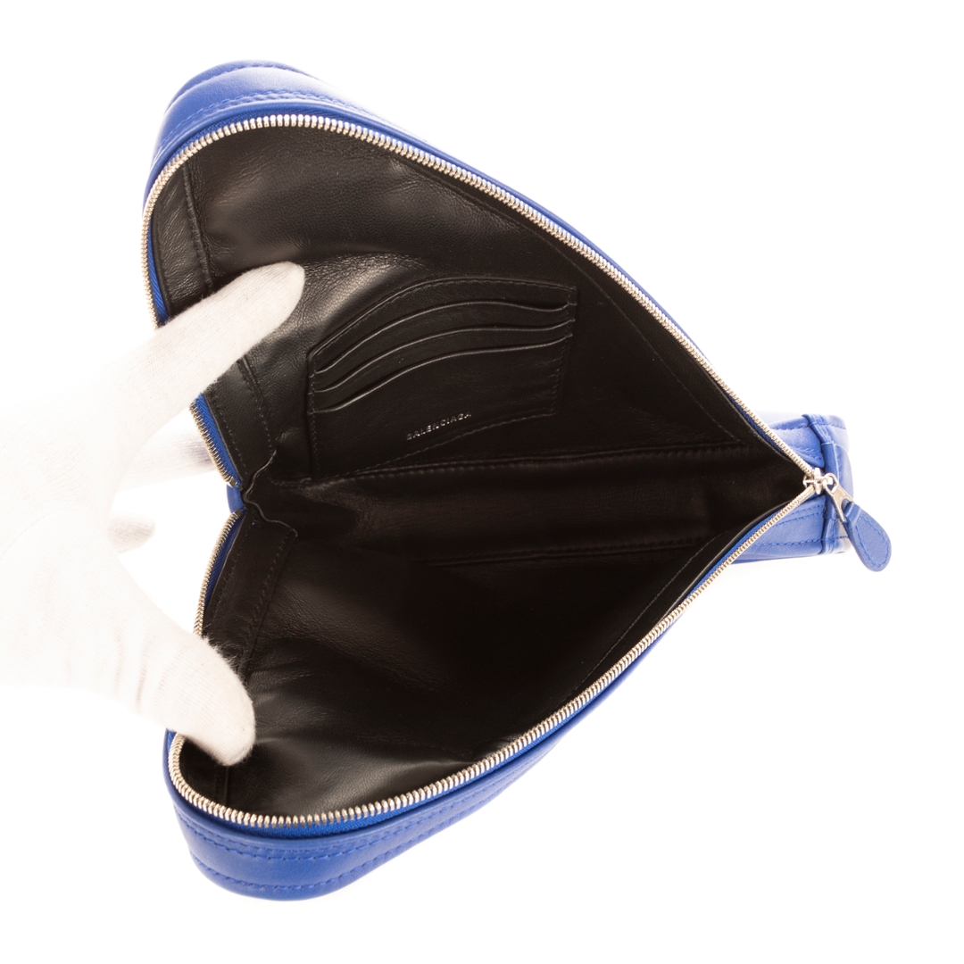 A vintage Balenciaga blue calf leather Triangle Pouch bag with a certificate of authenticity, Approximately cm height, cm width.