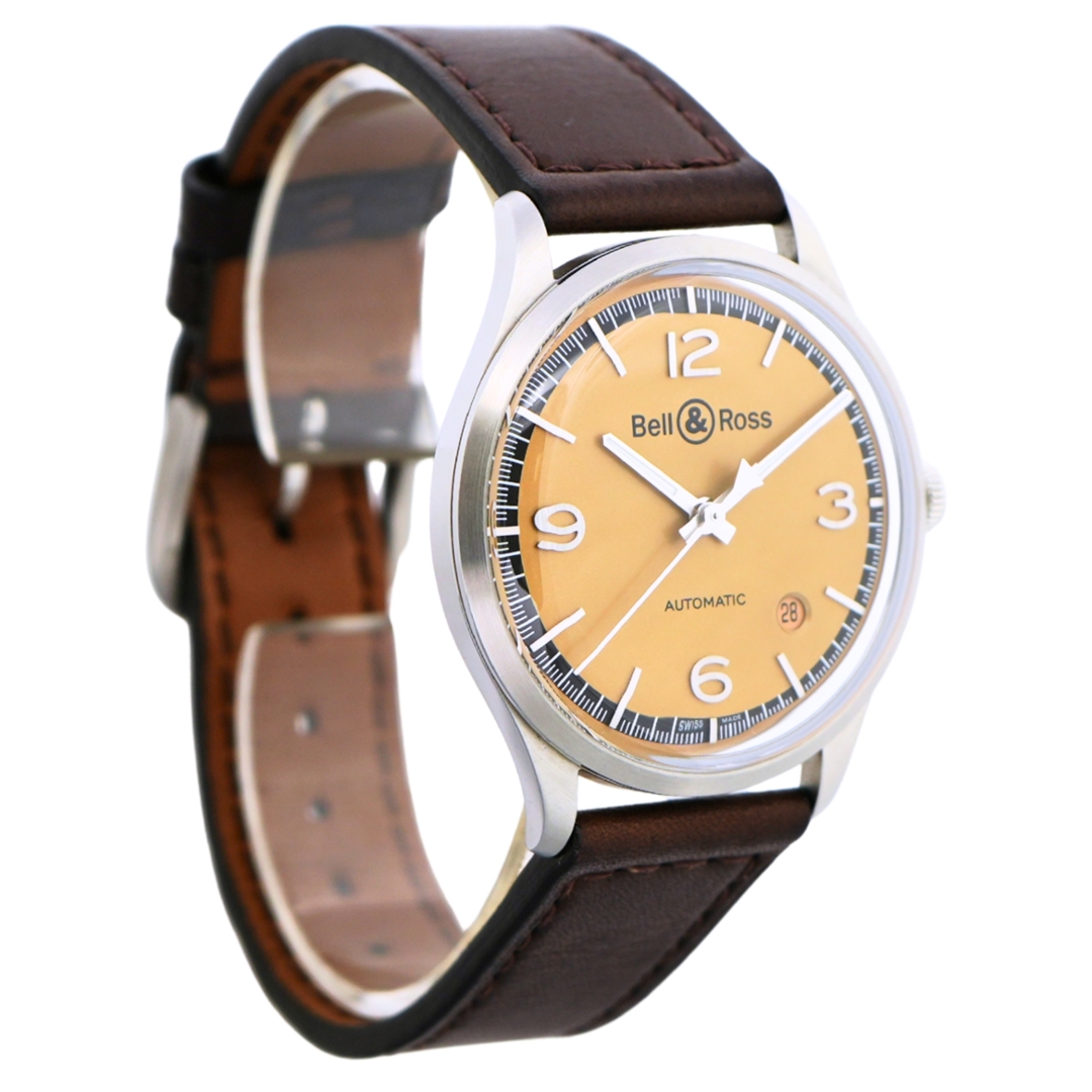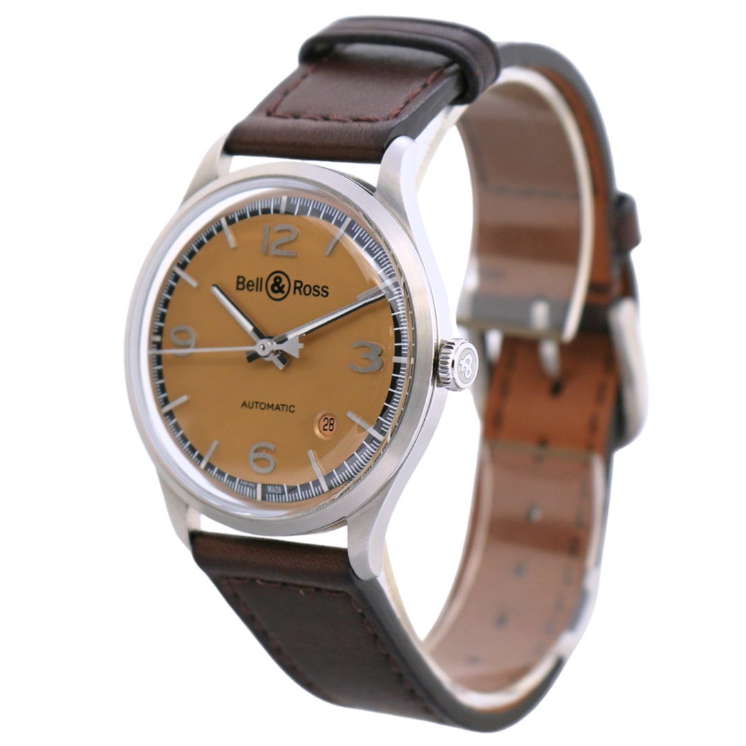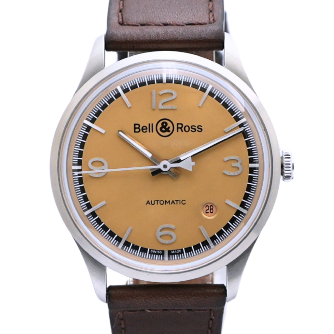 A Bell & Ross Bellytanker Watch, Brown Leather Strap with a Stainless Steel Case & Clasp on a Warm Champagne-toned Dial
