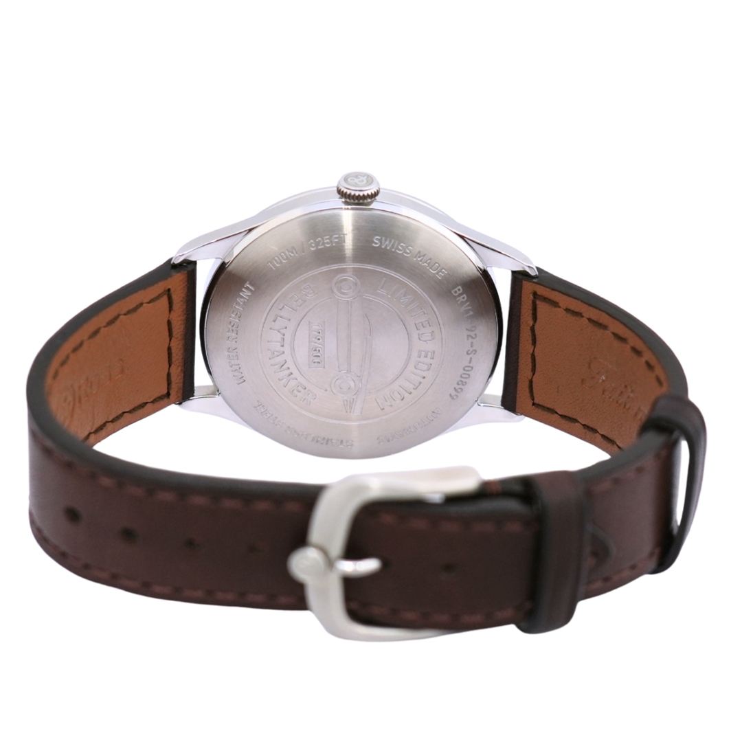 A Bell & Ross Bellytanker pays homage to vintage racing culture, drawing inspiration from streamlined race cars of the 1940s and 1950s. Its warm champagne-toned dial immediately sets it apart, delivering a retro aesthetic that feels both classic and distinctive. The 38.5mm stainless steel case strikes the perfect balance between vintage proportions and modern wrist presence, while the brown leather strap reinforces its timeless motoring heritage.