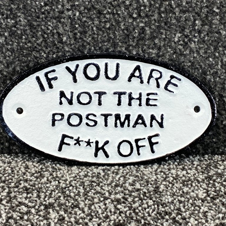 A black & white cast iron wall sign with the humorous inscription “If You Are Not the Postman F**k Off” is the perfect statement piece for those who appreciate bold and cheeky décor. Designed in a classic oval shape, the black raised lettering stands out sharply against the white background, ensuring the message is immediately noticeable. Its rustic cast iron construction gives it a sturdy and traditional look, while the playful wording guarantees plenty of laughs.