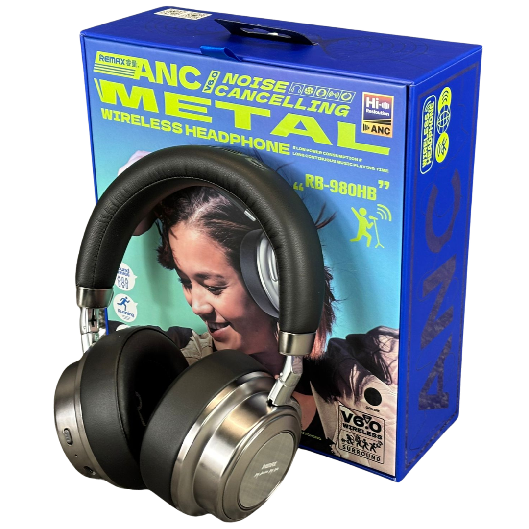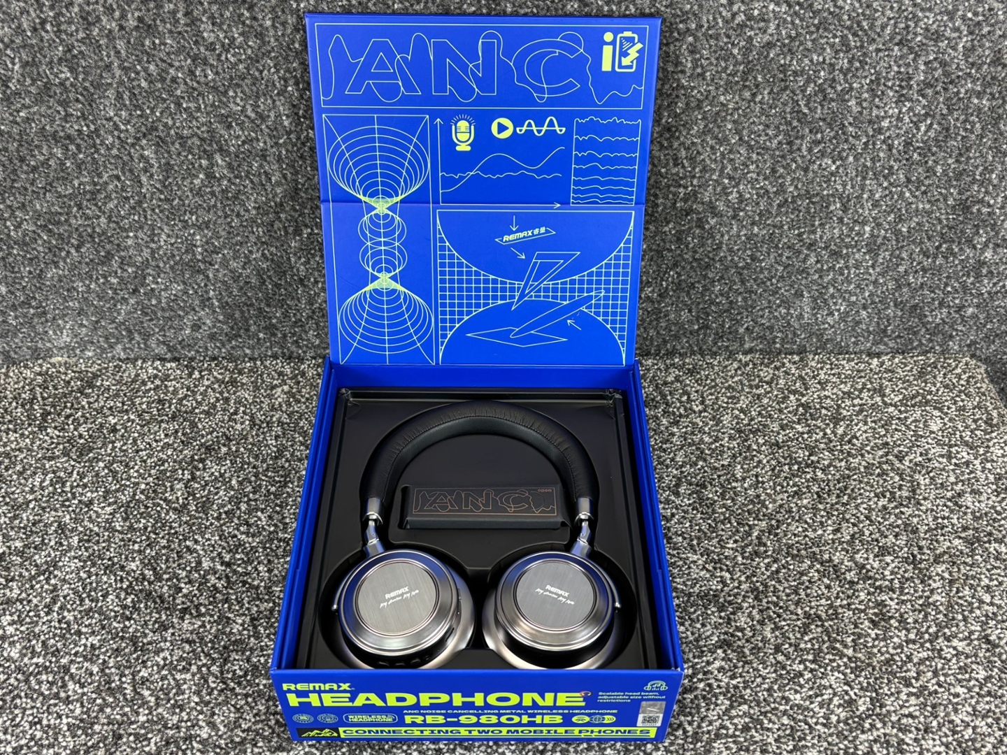 A brand new pair of black wireless over-ear headphones designed for immersive listening, combining modern styling with high-performance audio technology. Finished in a sleek metallic design, these headphones offer a premium look and comfortable fit, with cushioned ear cups that make them ideal for extended wear whether at home, travelling, or on the move.