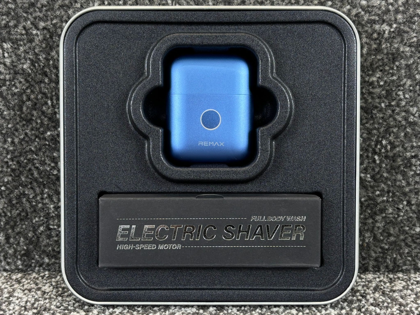 A brand new blue all-metal mini electric shaver designed for convenience, performance, and modern portability. Finished in a sleek metallic blue tone, this compact device offers a premium feel while remaining lightweight and easy to carry, making it ideal for travel, daily grooming, or on-the-go touch-ups. Its durable all-metal construction enhances both longevity and style.