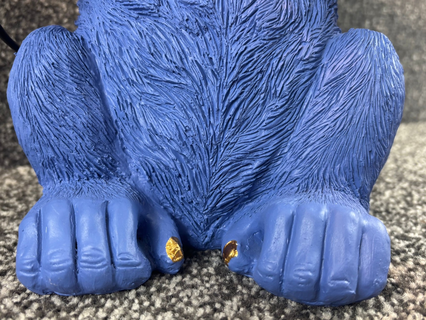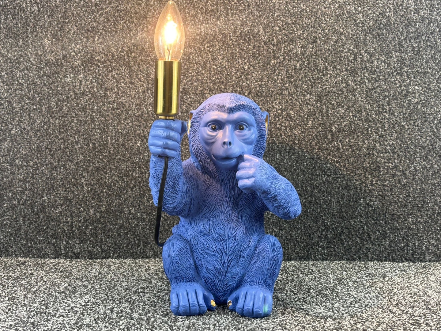 A Blue Sitting Chimp Table Lamp. Approx 35cm height, 16cm width, 18cm depth.