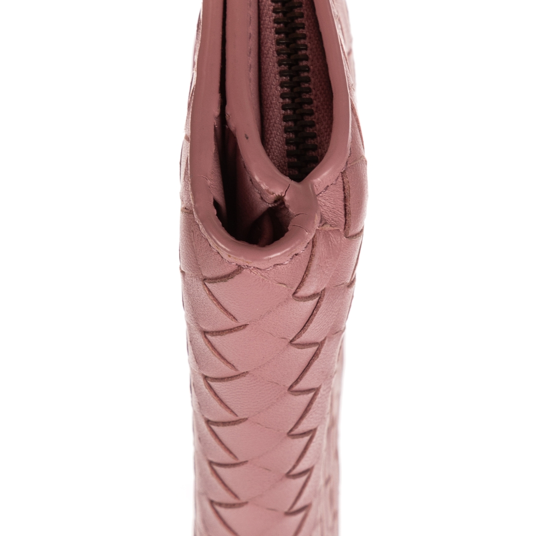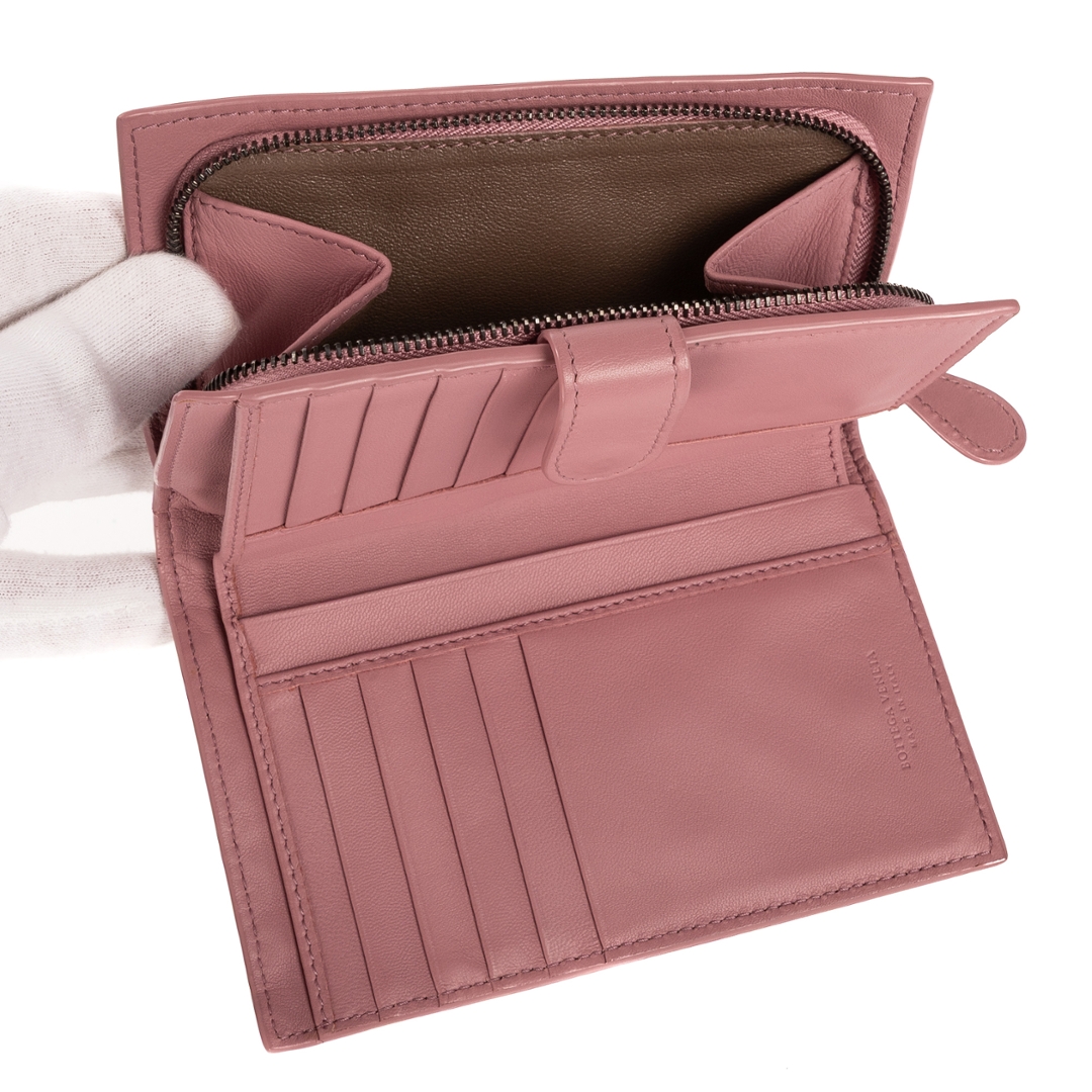 A vintage Bottega Veneta purple calf leather Compact Wallet with a certificate of authenticity, Approximately 9cm height, 14cm width.