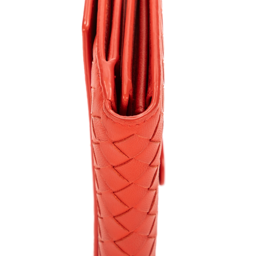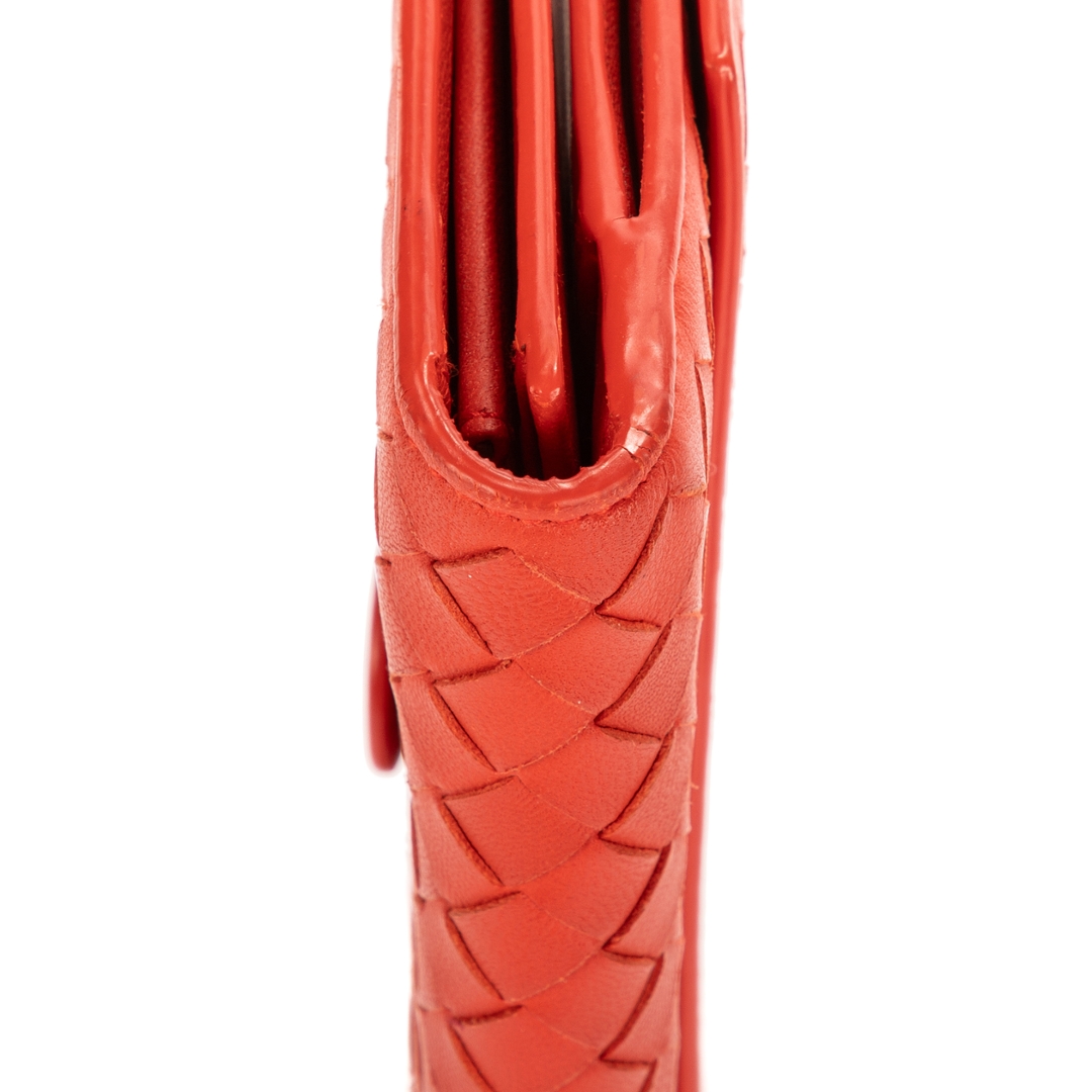 A vintage Bottega Veneta orange calf leather Intrecciato Long Wallet with a certificate of authenticity, Approximately 10cm height, 19cm width.
