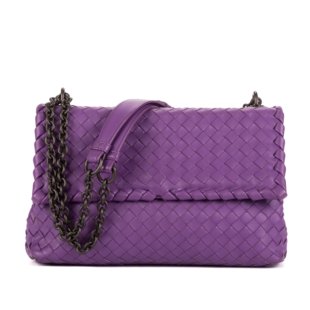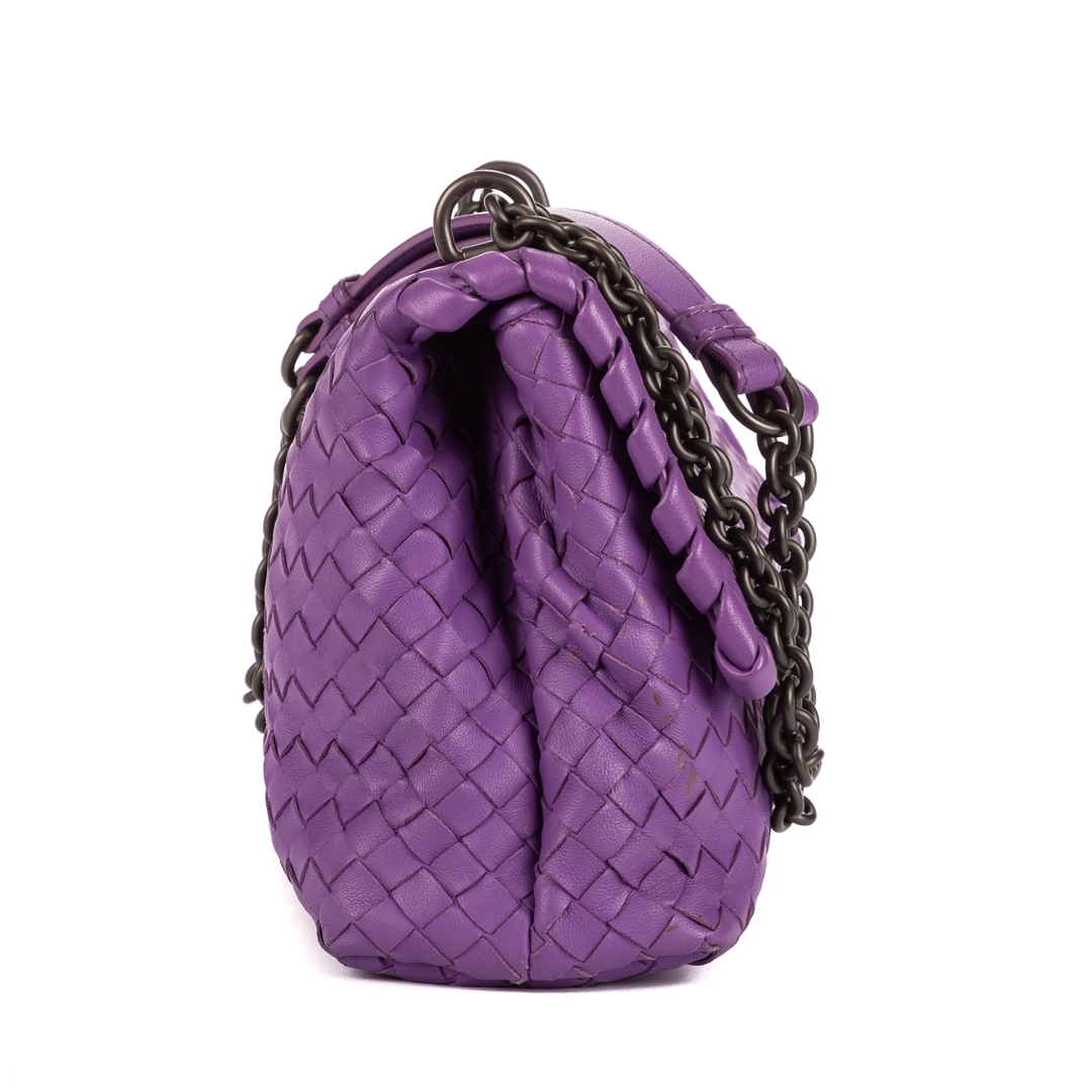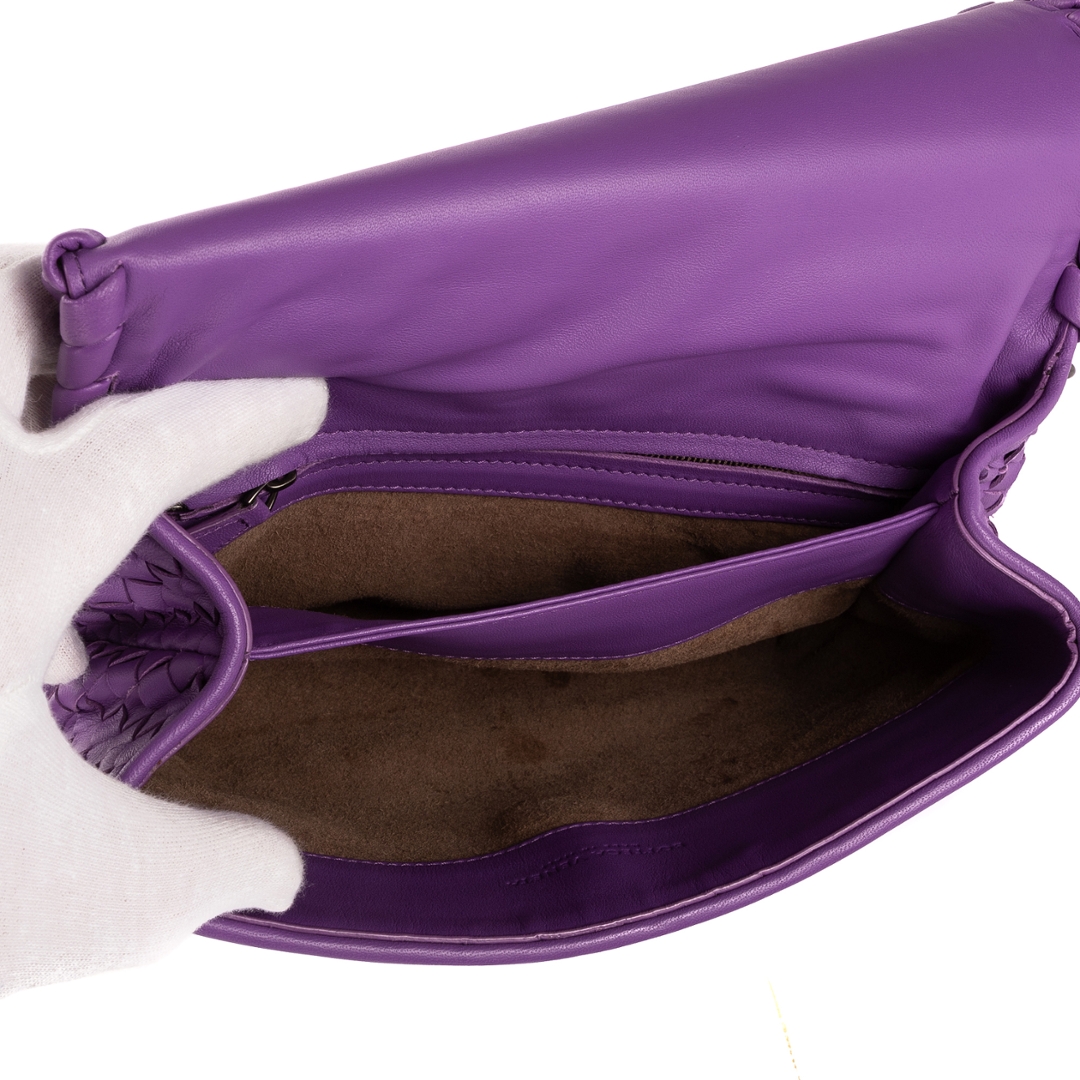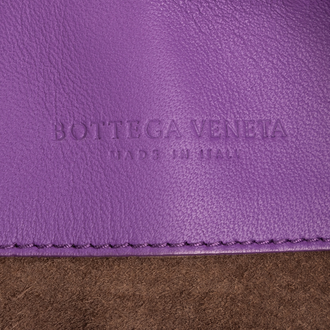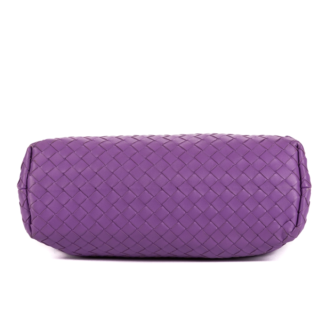 A vintage Bottega Veneta purple calf leather Olimpia bag with a certificate of authenticity, Approximately 17cm height, 24cm width.