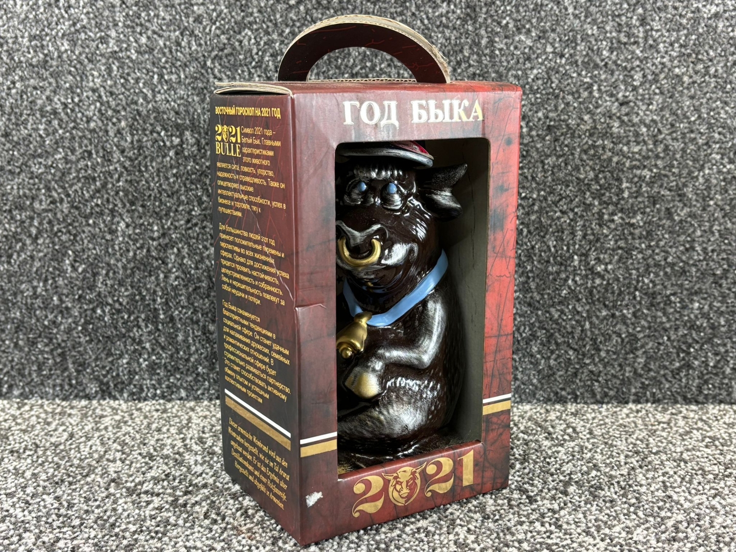 A 50cl bottle of 2021 Bulle Armenian Brandy presented in a striking Year of the Ox gift box — an eye-catching and collectable piece that immediately stands out. The bottle itself is crafted in the shape of a bull, complete with expressive detailing and a polished finish that gives it a bold, luxurious presence. It’s a perfect fusion of novelty design and traditional Armenian brandy craftsmanship.