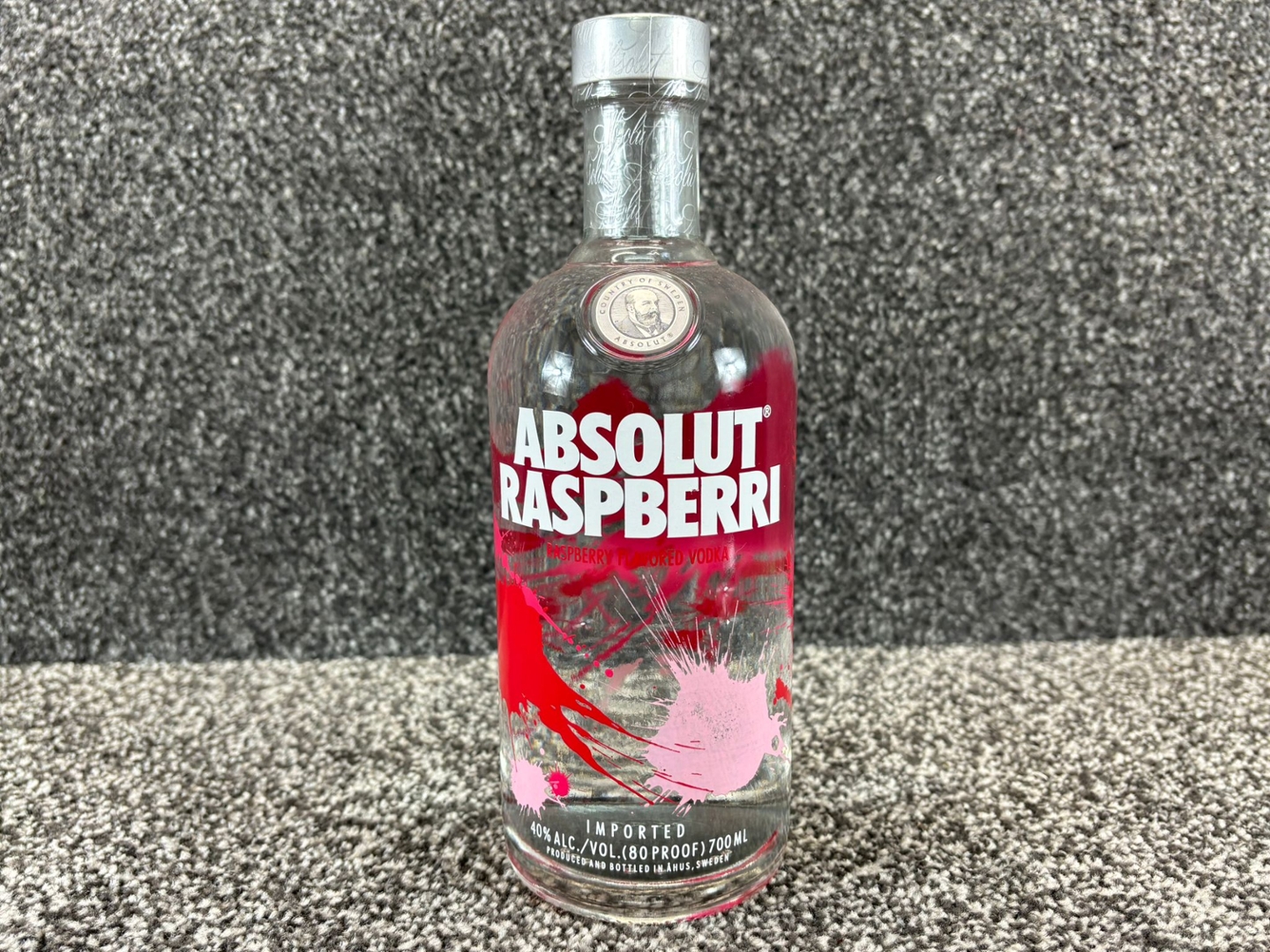 A 700ml bottle of Absolut Raspberri Flavoured Vodka, bringing