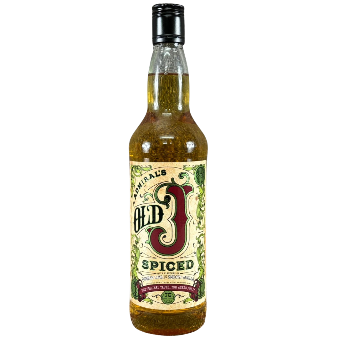A bottle of Admiral's Old J Persian Lime & Smooth Vanilla Spiced Rum. 70cl.